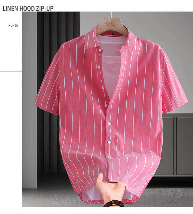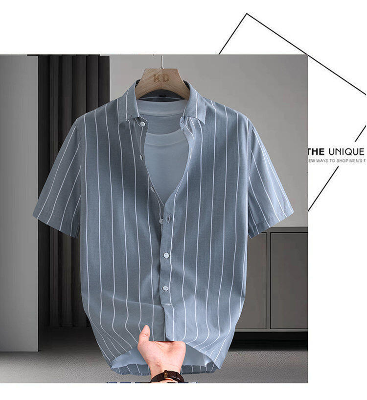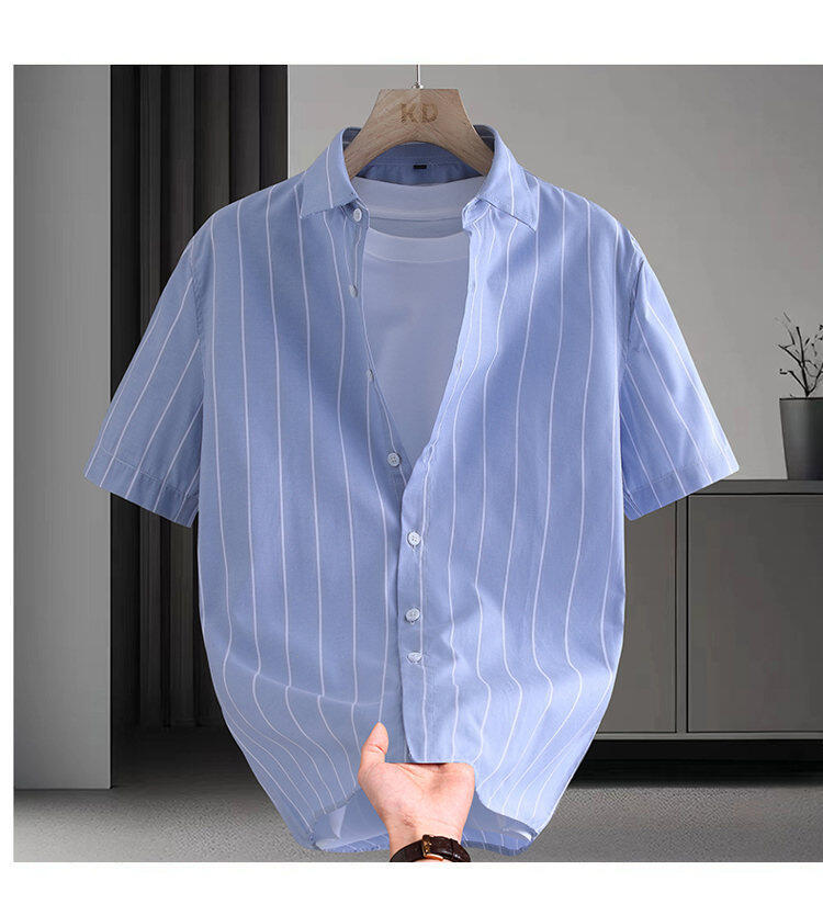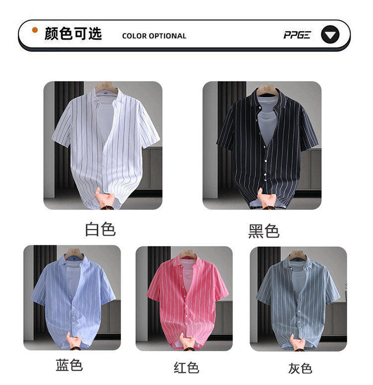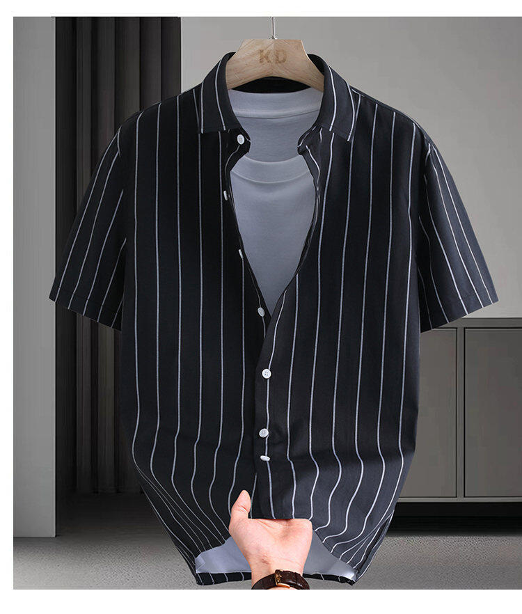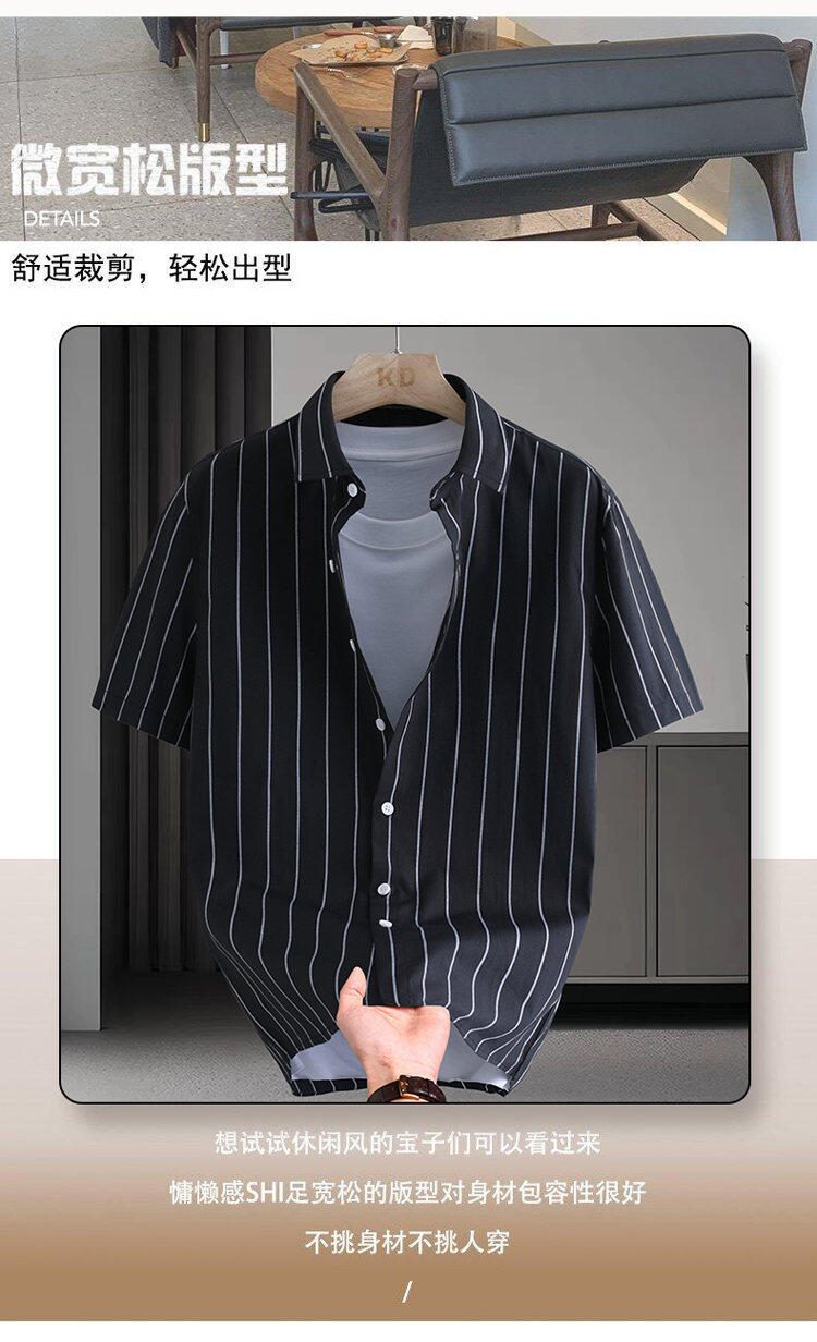 メンズストライプ半袖シャツ 2025 夏の新作紳士服若者ファッションカジュアルトレンド多用途シャツ