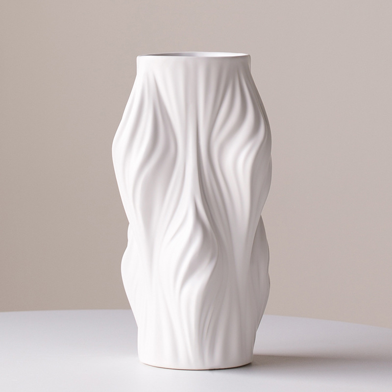 现代简约白色花瓶摆件北欧家居3D打印陶瓷工艺品跨境高级感装饰品