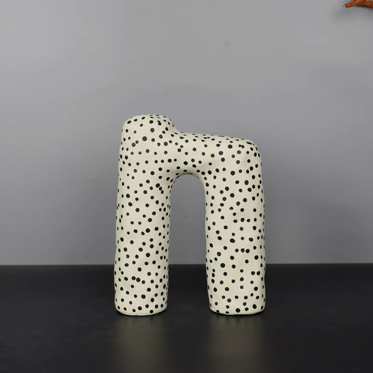 シンプルで現代的な抽象的なアイデアの波点n形アーチの置物の見本
