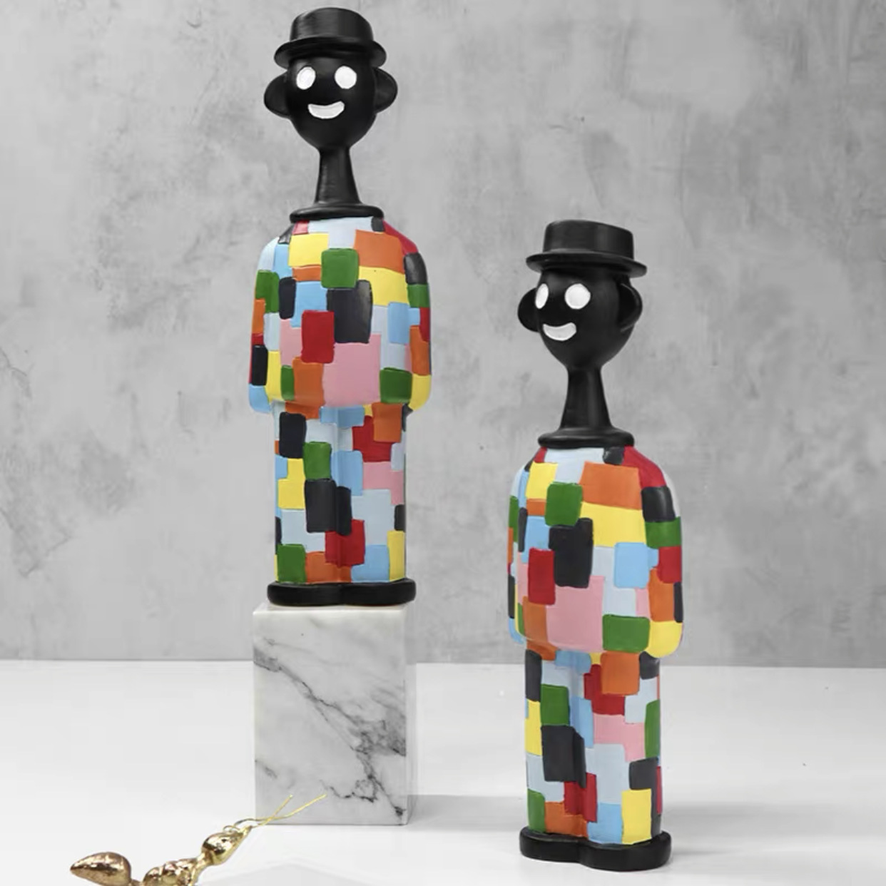 モダンなシンプルなクリエイティブカラフルな漫画のキャラクターの彫刻置物子供の部屋のサンプルルームの人形樹脂工芸品