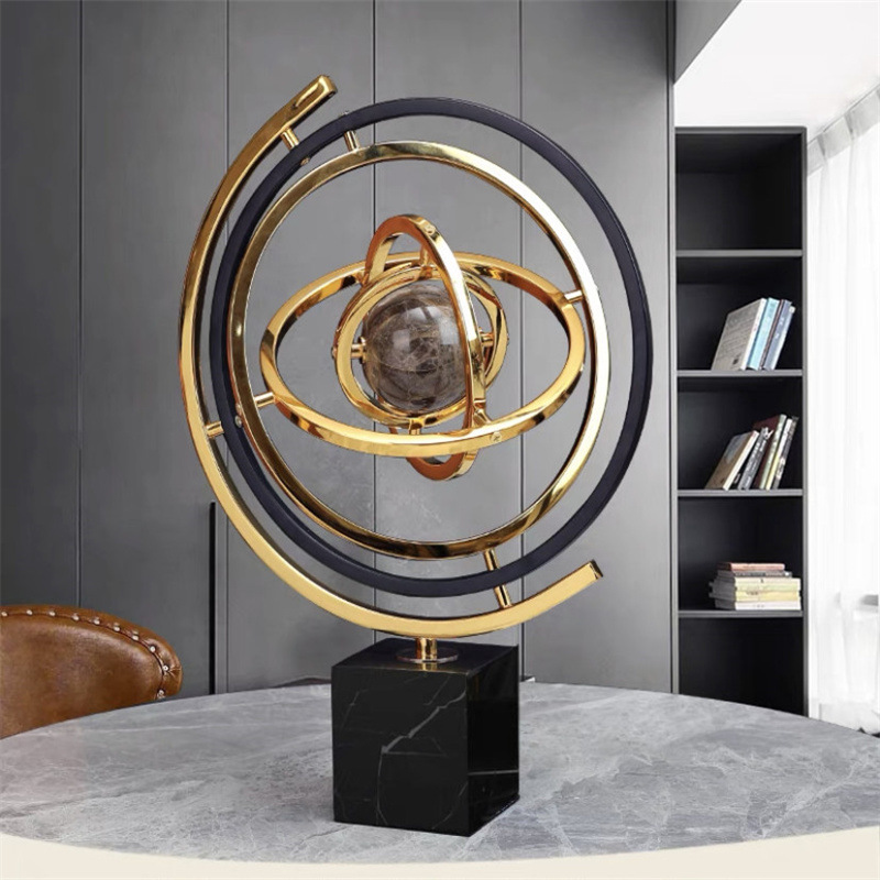 現代の軽豪華な高級金属の渾天儀の地球の様子の販売部の客間の酒の箱の書斎のデスクトップの柔らかい装飾品