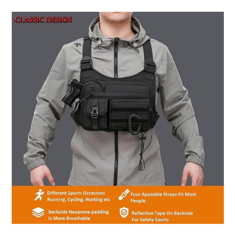 アマゾン男性ファッション胸バッグアウトドア狩猟ベストアウトドアスポーツ乗馬ベスト多機能アウトドア胸バッグ