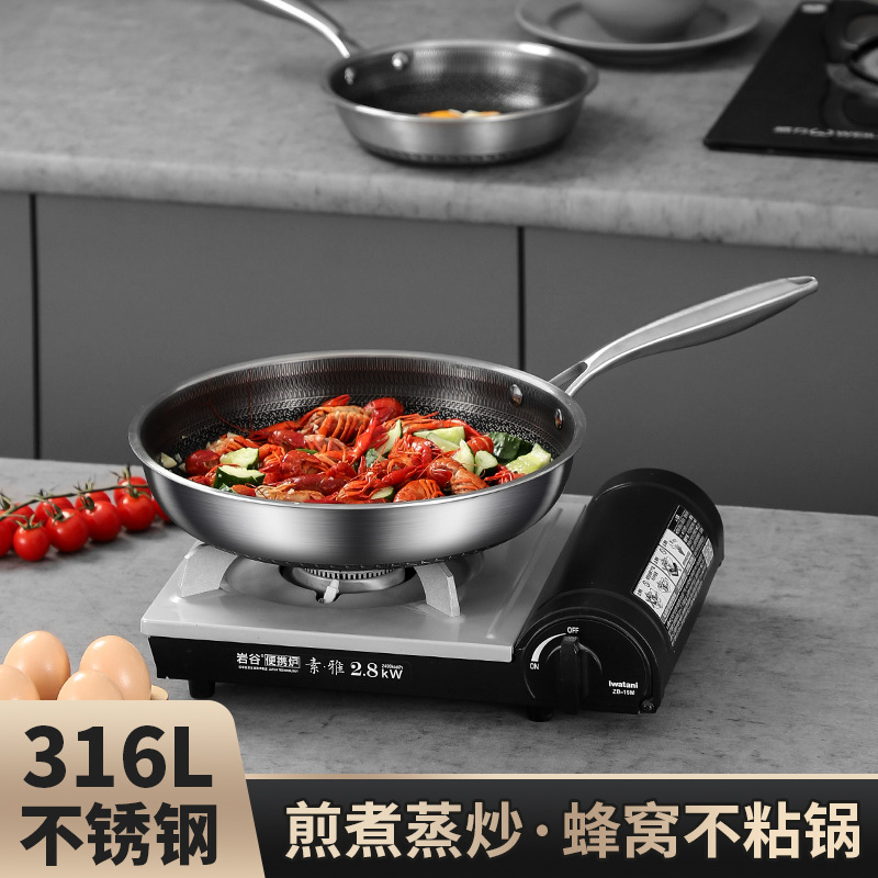 ハニカム 316L ステンレス鋼フライパン家庭用コーティングされていないノンスティックパン深めのフライパンステーキパンケーキオムレツ
