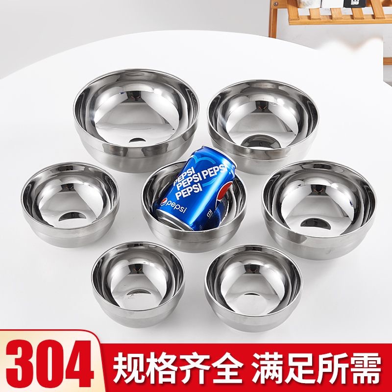大人と子供用の304ステンレス鋼ボウル、家庭用食堂鉄ボウル、二層幼稚園スープボウル、ライスボウル、ヌードルボウル、断熱ボウル