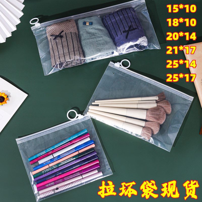 現物フロスト美化粧リング袋学生文房具鉛筆透明プラスチック指輪ファスナー旅行収納包装袋