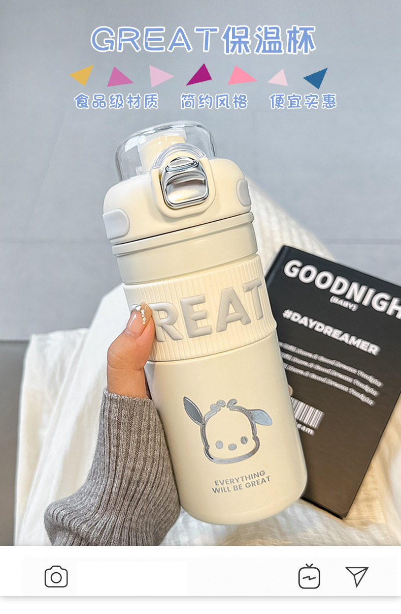 女の子用大容量魔法瓶カップ、女性用シンプル316ウォーターカップ、2024年新作高価値スポーツダブルストローカップ