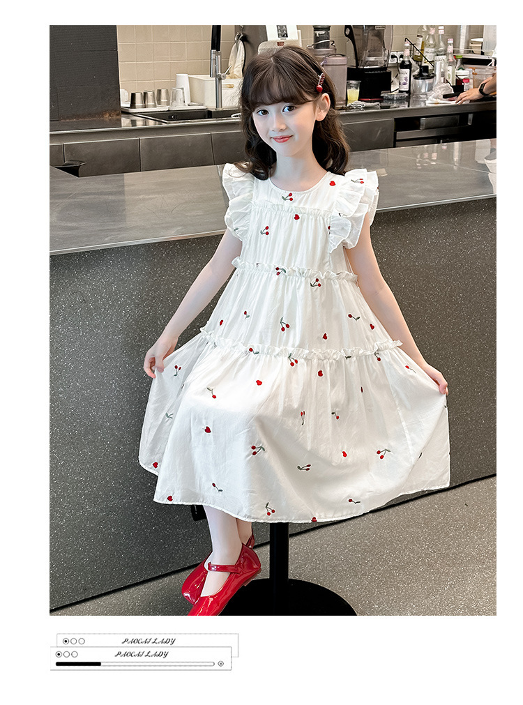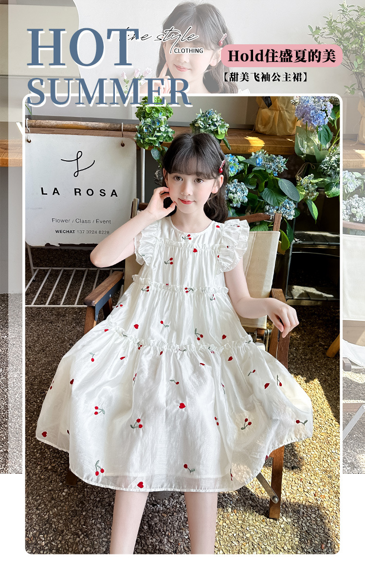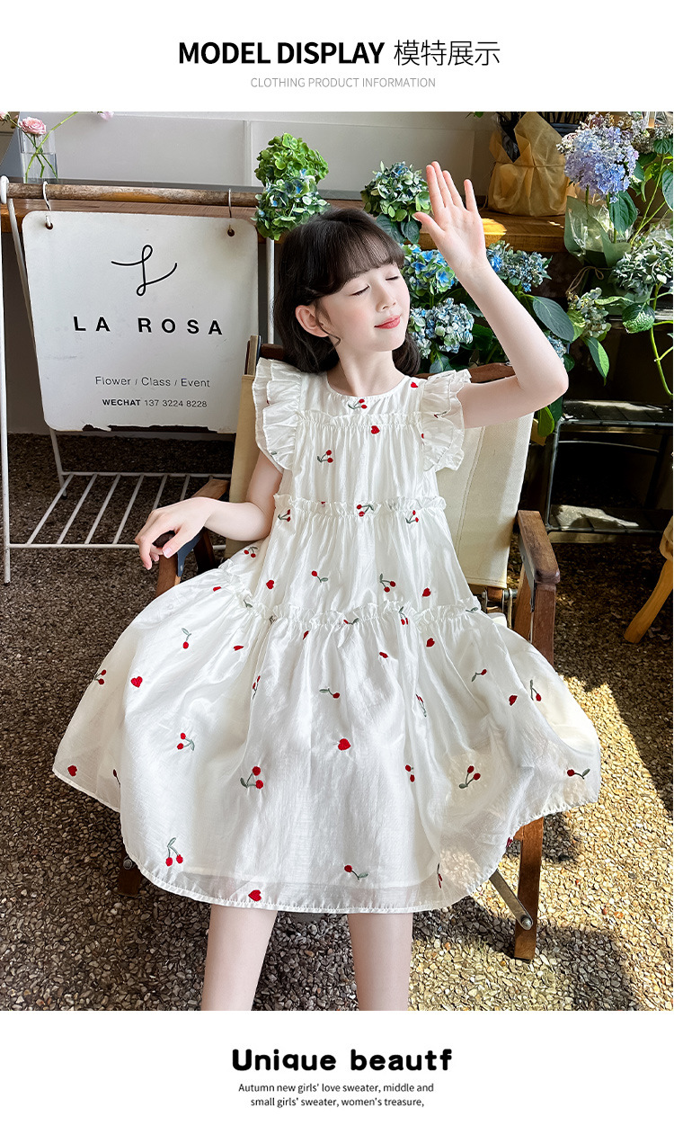 女の子ドレス 2025 夏の新スタイル韓国風西洋スタイル甘いチェリー刺繍クールテンセルベストドレス