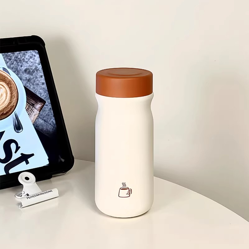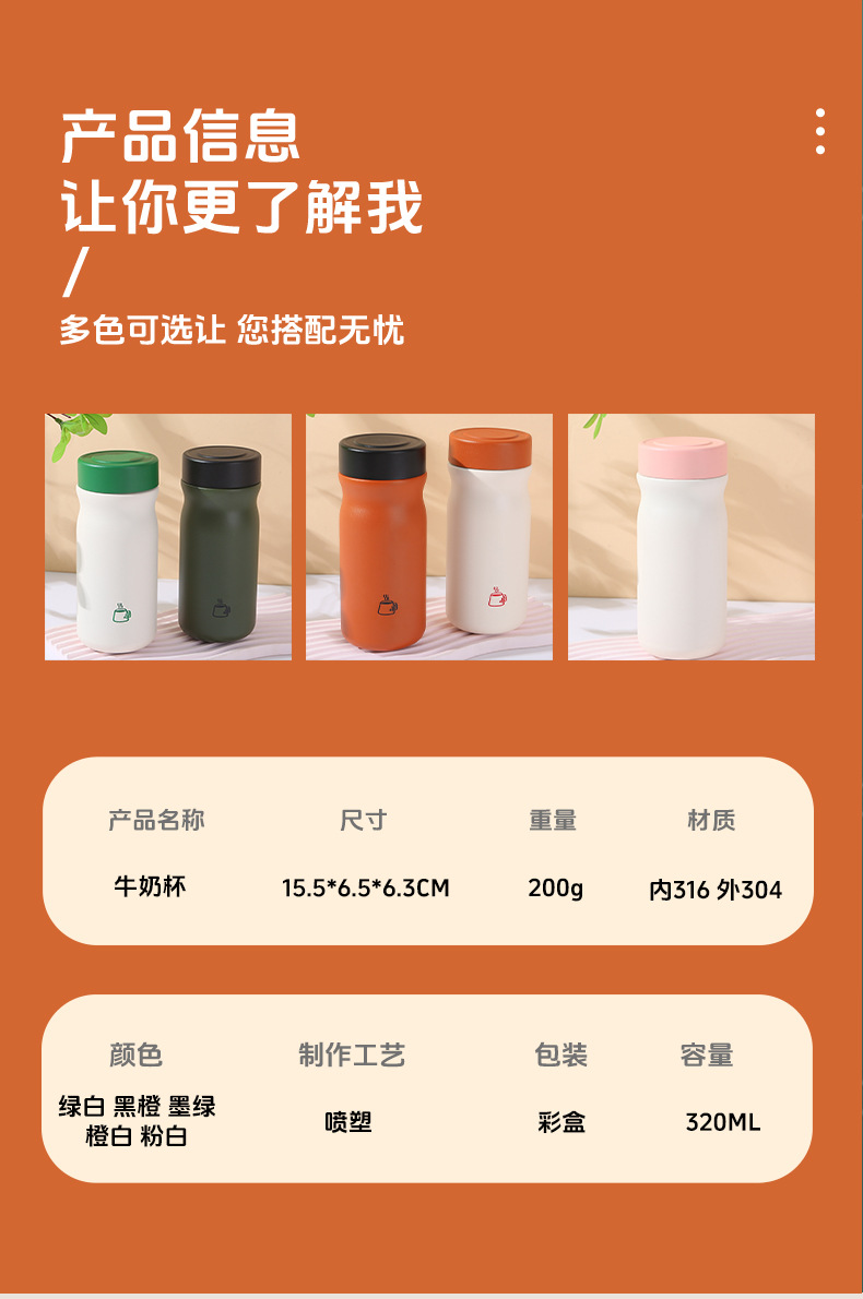 新款牛奶盖保温杯ins奶油风可印logo保温杯双层真空不锈钢可便携