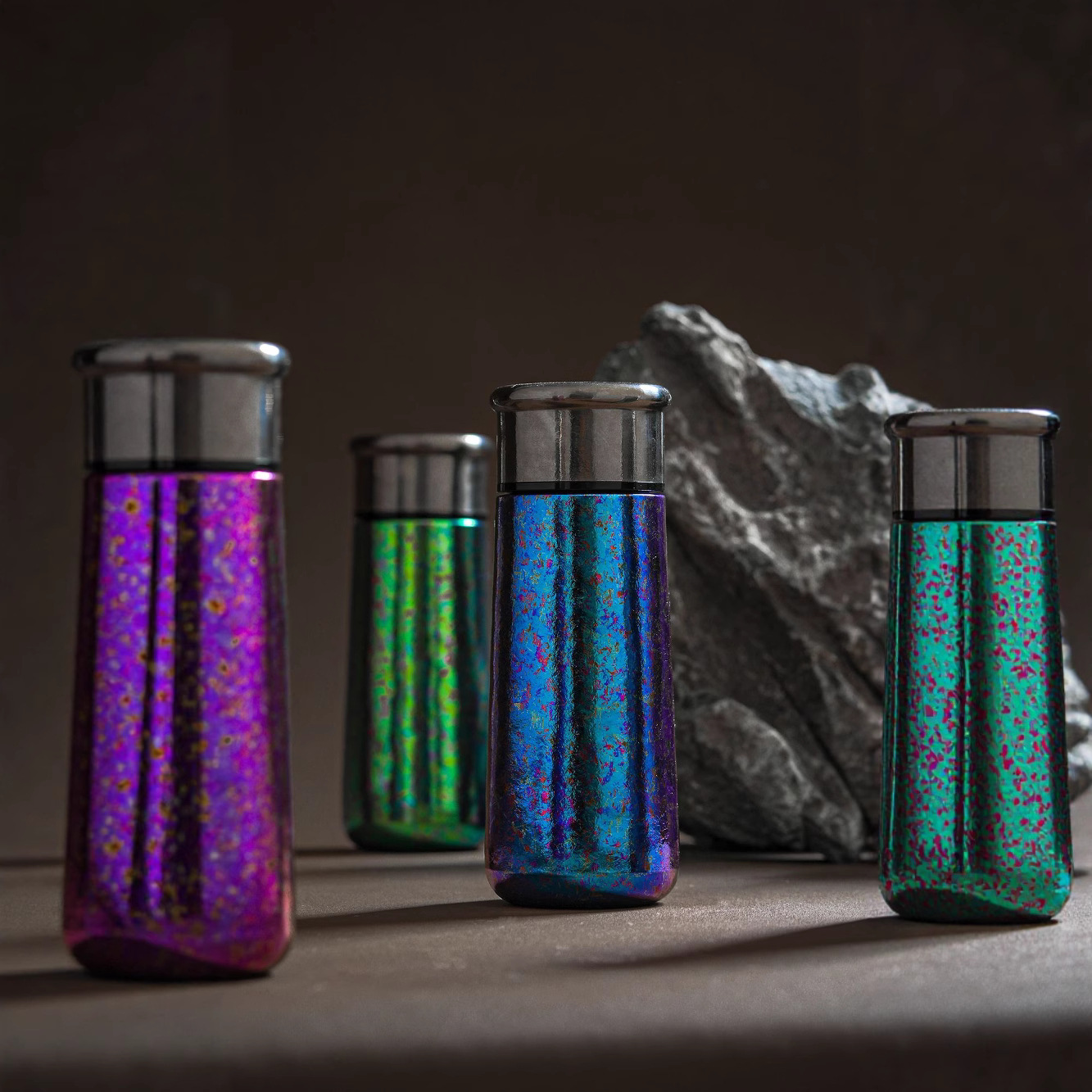 人気の純チタン魔法瓶カップ、ポータブルポケットカップ、キノコヘッドウォーターカップ、高級氷結晶純チタンフラワーティー健康ウォーターカップ