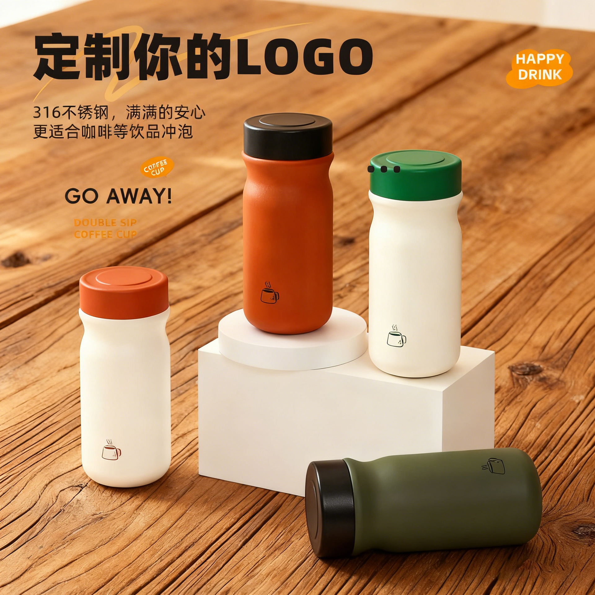 新しい 316 ステンレス鋼魔法瓶カップ、高見えするポータブルコーヒーカップ、茶水分離シチュービーカー、カスタマイズ可能なロゴ