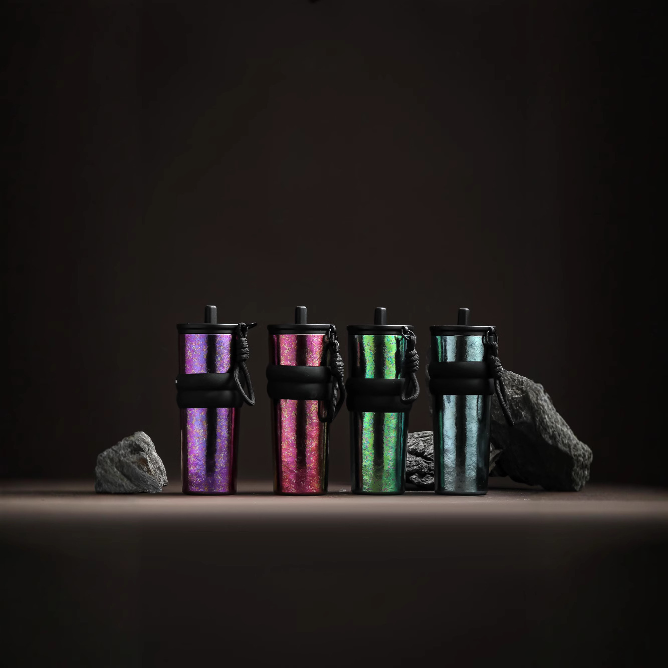 新しい純チタン魔法瓶カップ、大容量アイスカップ、高価値チタンカップ、ポータブルカーストローカップ、ロープコーヒーカップ