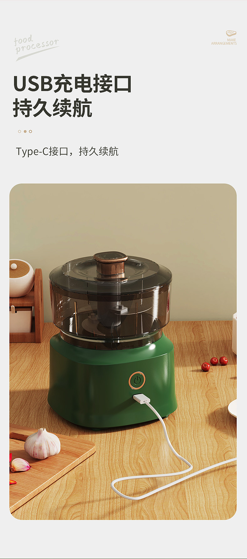 厨房多功能料理机无线充电电动绞肉机家用捣蒜器宝宝辅食机搅蒜器
