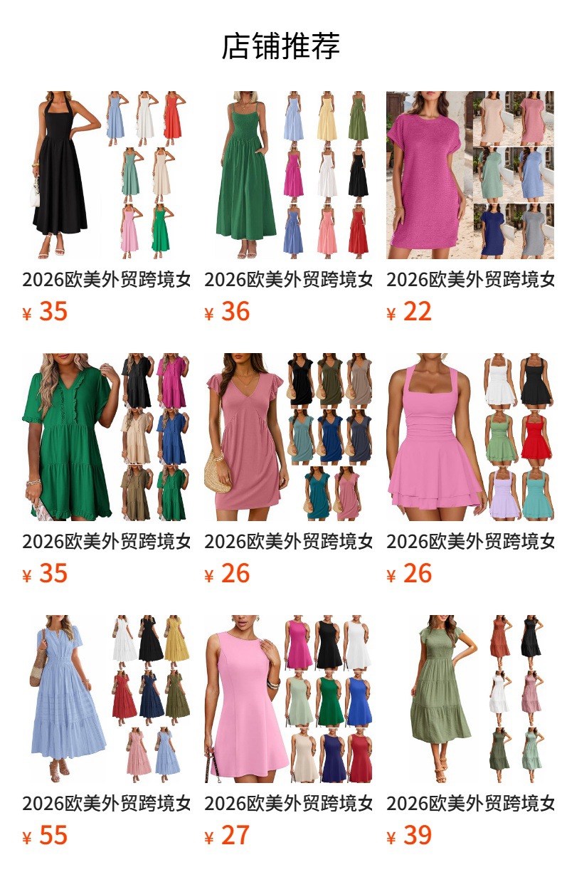 2026年欧米向け越境販売レディースアマゾン人気商品丸襟カフスロールアップ無地半袖ポケット付きワンピース