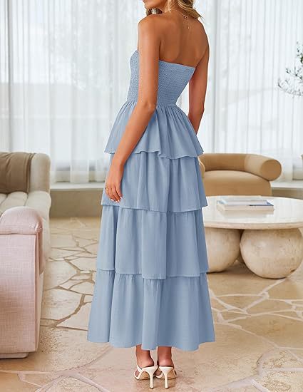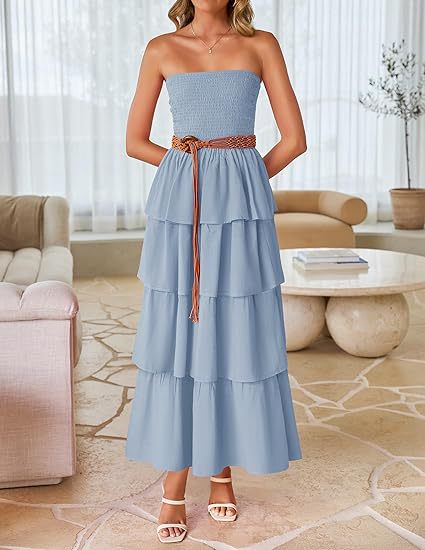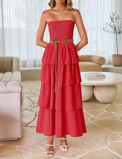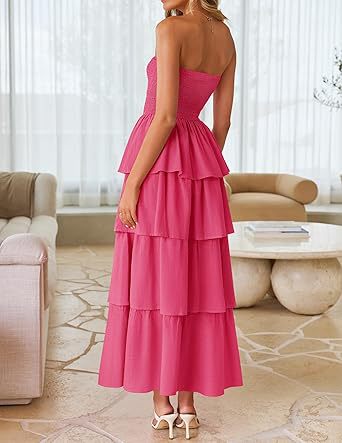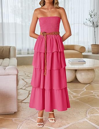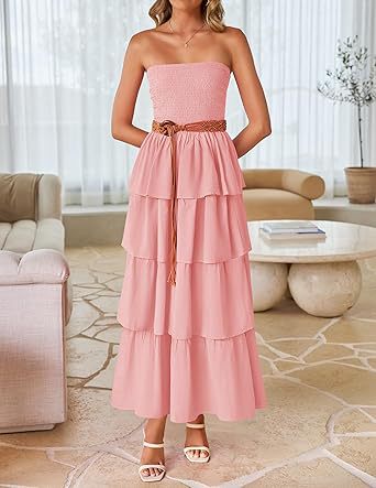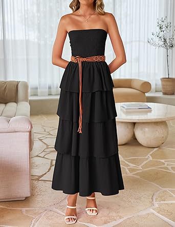 2026年欧米向け越境販売レディースアマゾン人気商品ノースリーブオフショルダープリーツレイヤードチューブトップロングワンピース