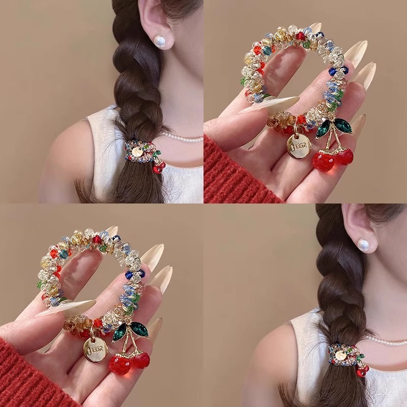 カラーの水晶のさくらんぼのペンダントの髪輪の女性の両用のブレスレットのひもの女性の蜜の髪のひもの皮の筋は馬尾の頭を刺して飾ります。