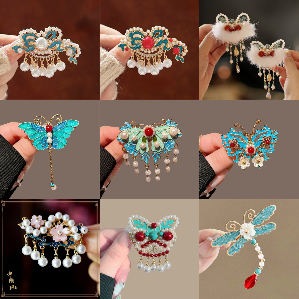 レトロなカモノハシクリップ、古代スタイルのサイドクリップ、女性の新しい中国風の漢服馬面スカート、ハイエンドのタッセルヘアクリップ、ヘアアクセサリー