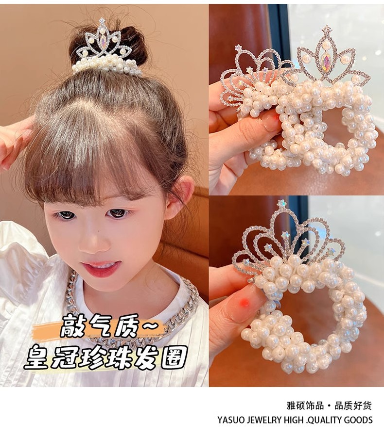 子供の王冠の頭の飾りの王女のひもの韓国の新型の真珠のシュシュの少女は髪の毛の団子の頭の輪ゴムを刺します。