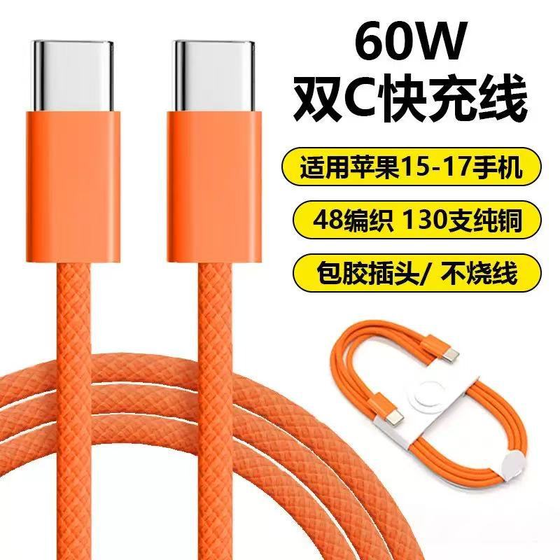 适用苹果17编织快充线iPhone15/16橙色双type-c手机数据线批发