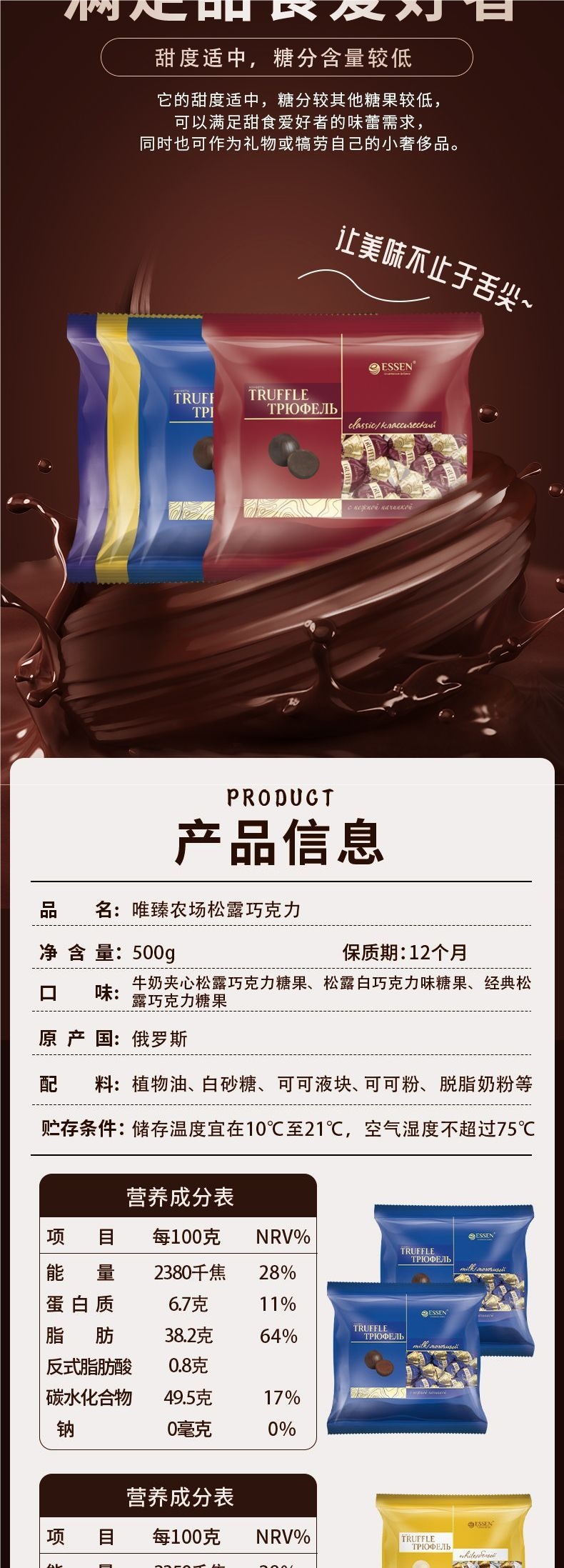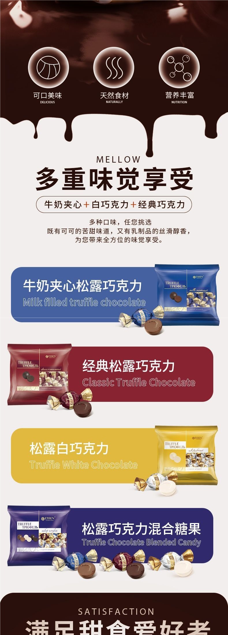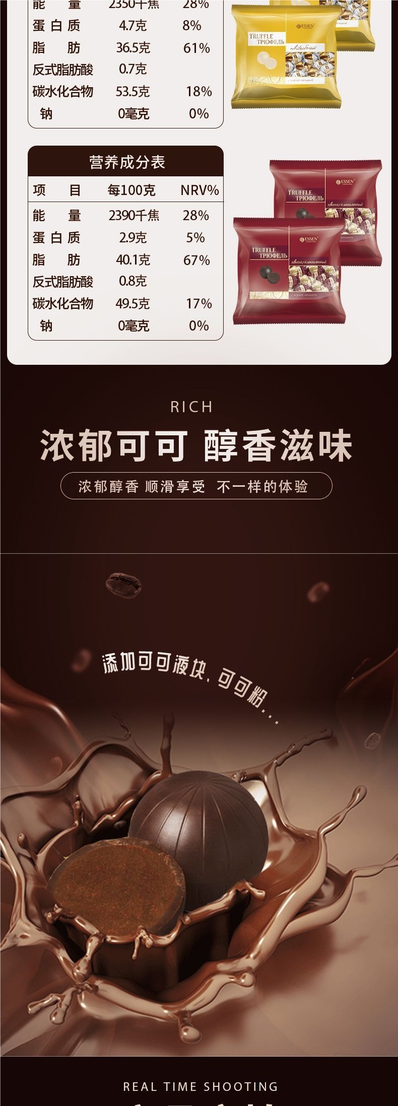 ロシア輸入松露チョコレートボール唯臻農場牛乳バニラ味混合キャンディー菓子喜糖年用品