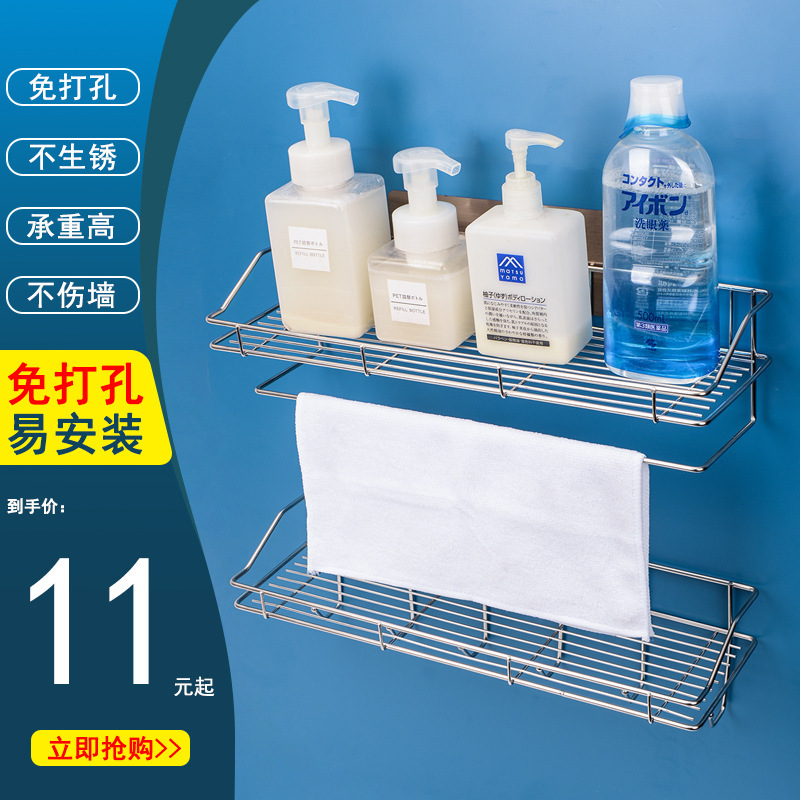 バスルーム収納ラックステンレス鋼パンチフリーキッチンコーナーバスルームオーガナイザー化粧品収納ラック取り外し可能と洗える