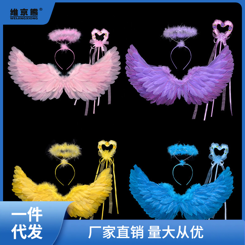 子供と大人のための羽の翼の6つのセット、ハロウィーンとクリスマスの小道具、ステージキャットウォーク、Shihua Shihua