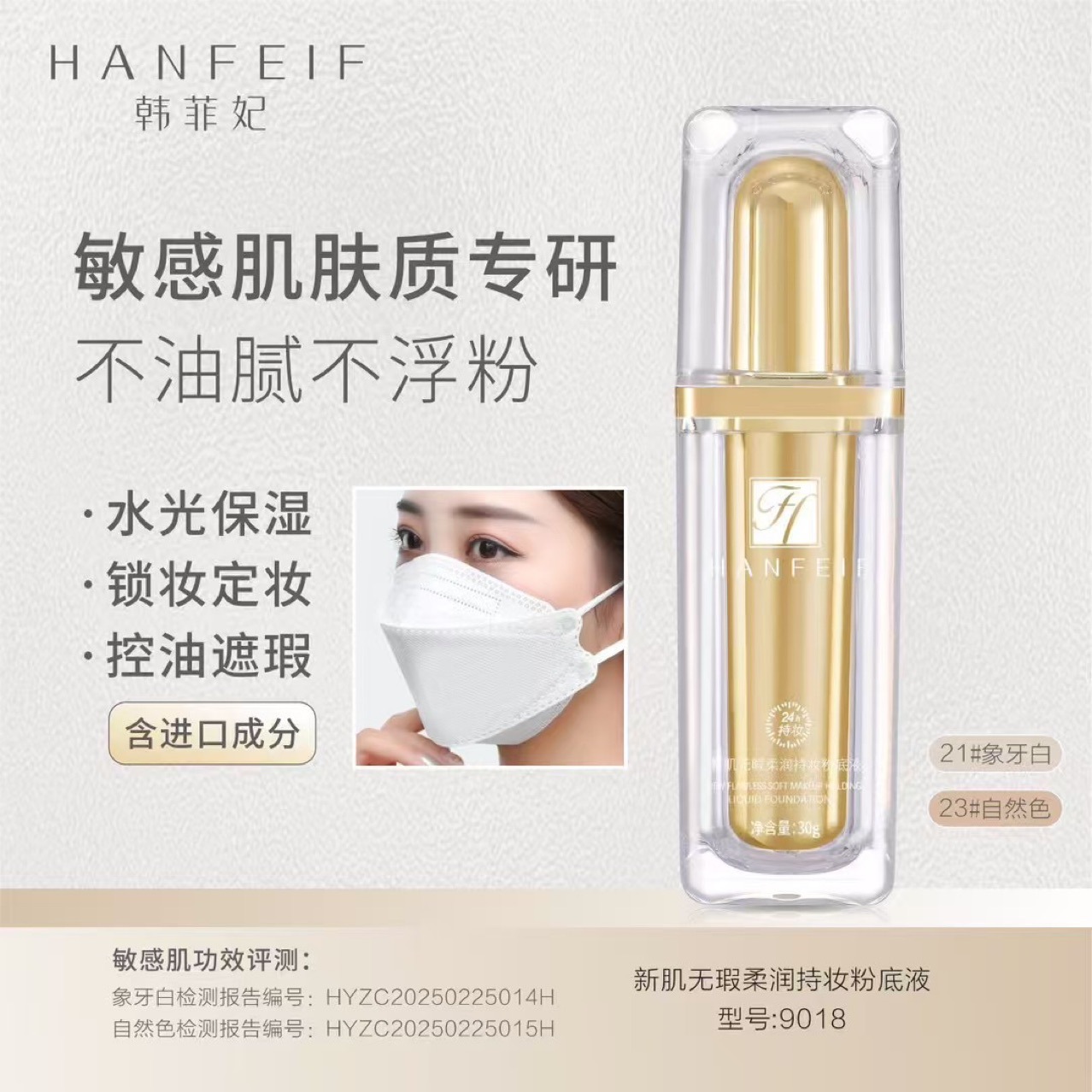 ハン・フェイフェイの新しい完璧な敏感肌用リキッドファンデーション、肌の色を明るくするレイジー偽化粧クリーム、コンシーラーファンデーション