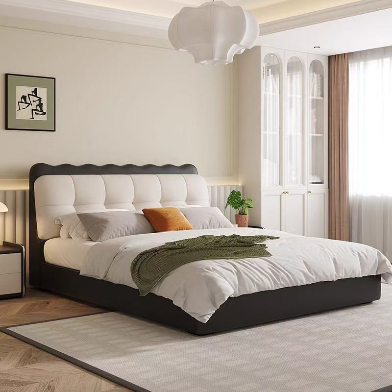 奶油风大象耳朵真皮床双人1.8x2米软包现代简约1.5米主卧大床婚床