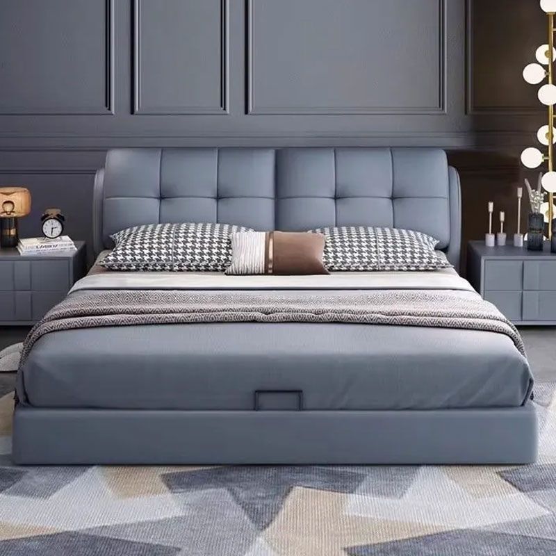 现代简约真皮床1.8米双人主卧床1.5米单人次卧床储物高箱床皮艺床