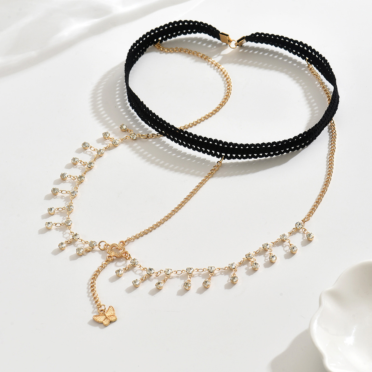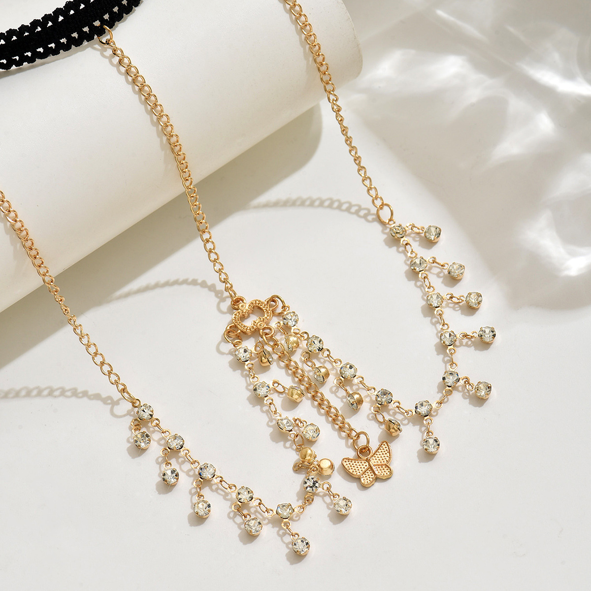 Zhuru 衣料品クロスボーダーサプライメーカー直販夏の蝶ペンダントファッションラインストーン弾性レッグリング H0054