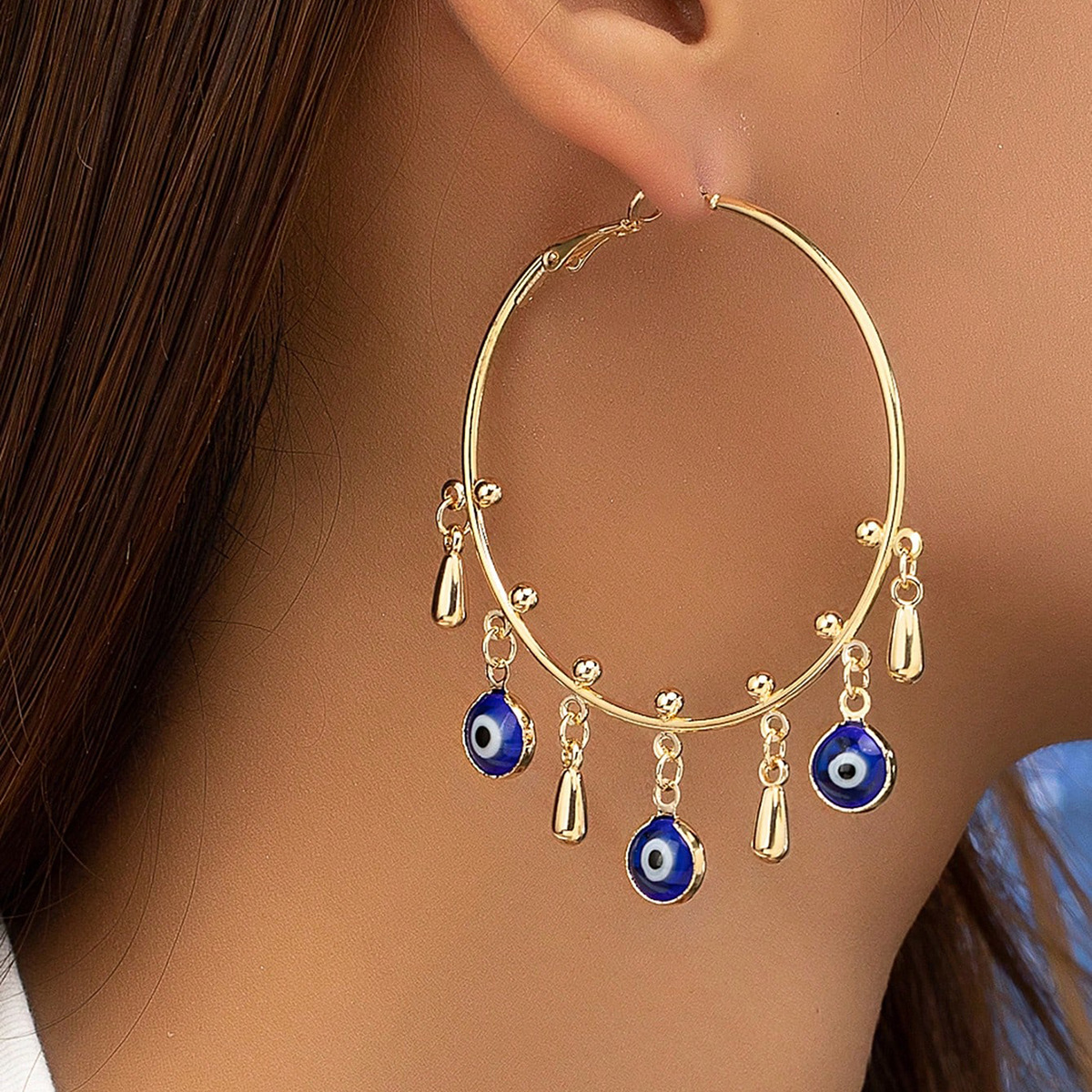 欧美跨境爆款时尚镀金恶魔之眼吊坠耳环名媛街拍朋克风耳饰品