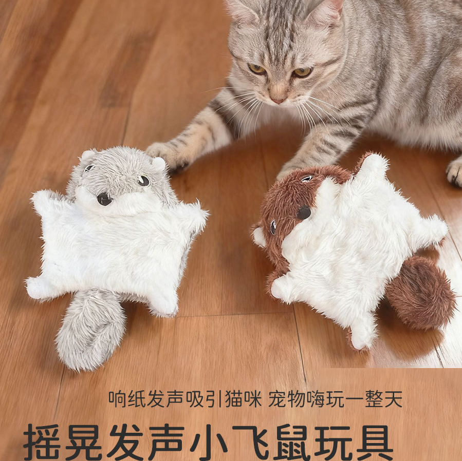 猫咪玩具内含响纸发声可爱毛绒小飞鼠自嗨解闷逗猫玩具狗狗玩具