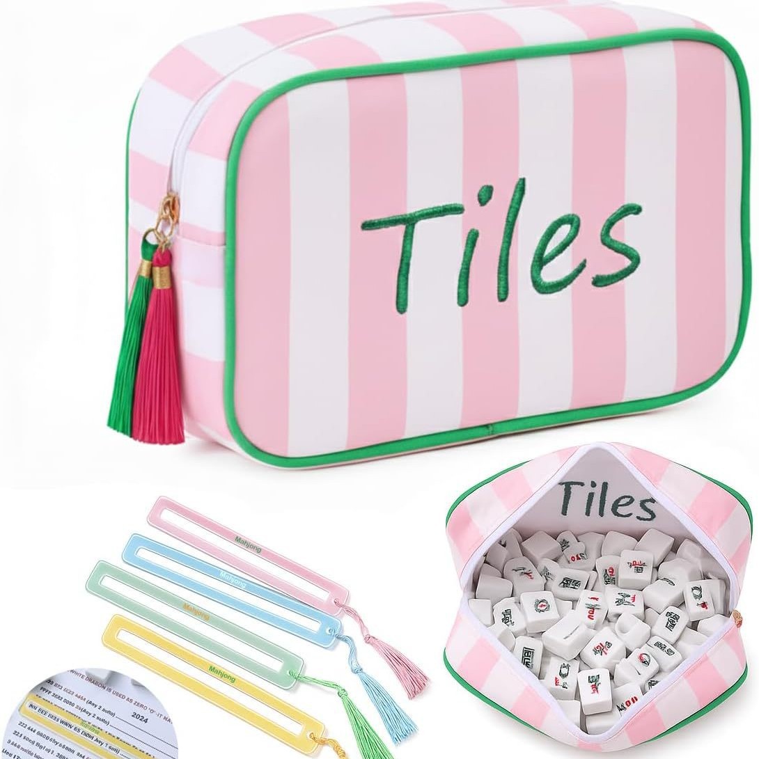 亚马逊跨境热销条纹化妆包高颜值大容量麻将包旅行便捷收纳包