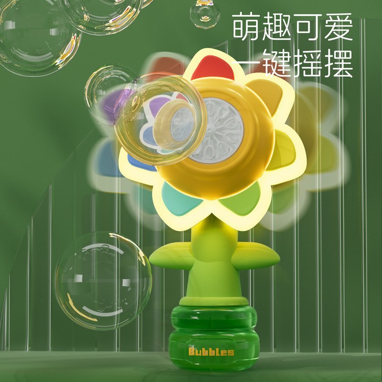 国境を越えたひまわりの七色の花バブルマシン全自動ライトシェイキングヘッドバブル吹きハンドヘルドスイングバブルおもちゃ