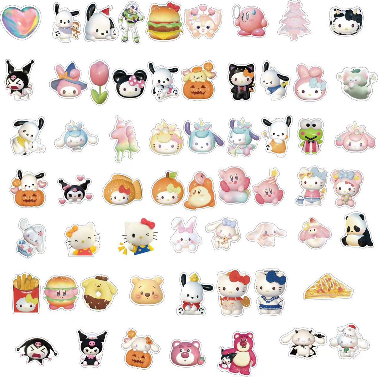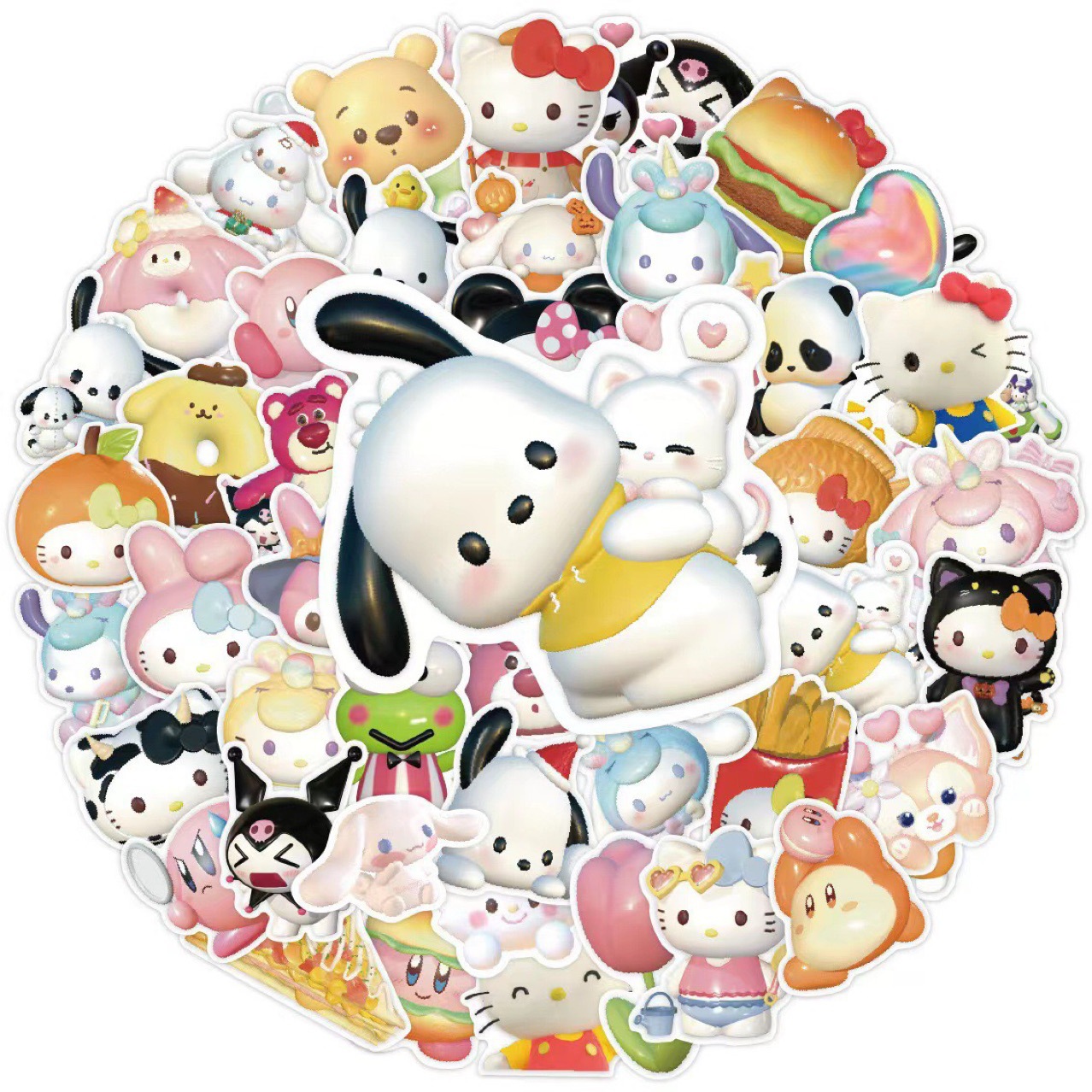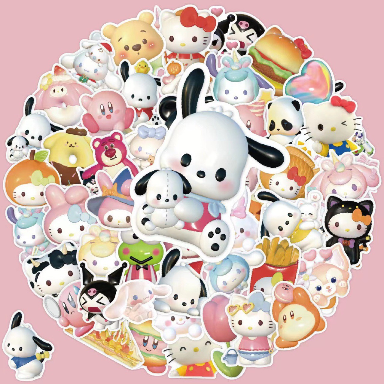60 枚の 3D サンリオ翡翠犬パチャ犬 KT 猫ステッカーノートブックウォーターカップスーツケース携帯電話 DIY 装飾