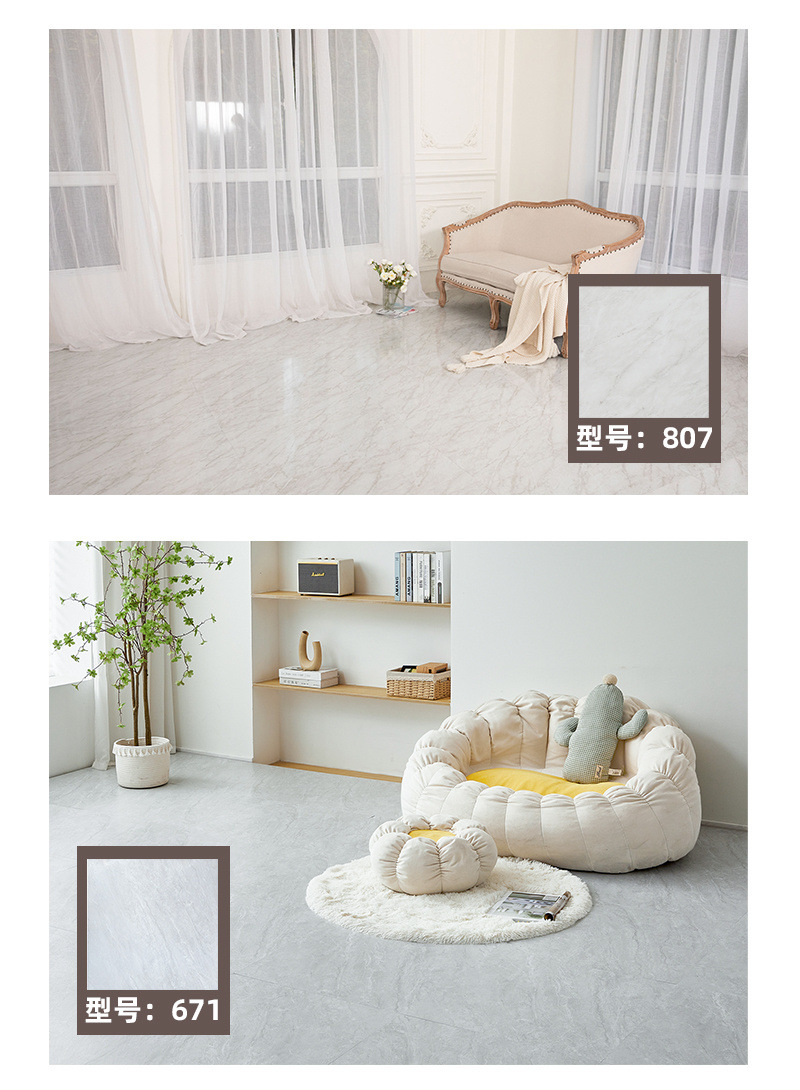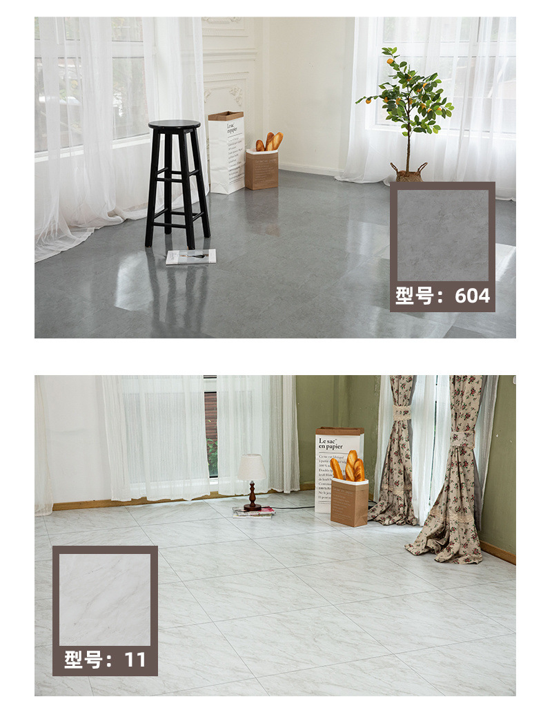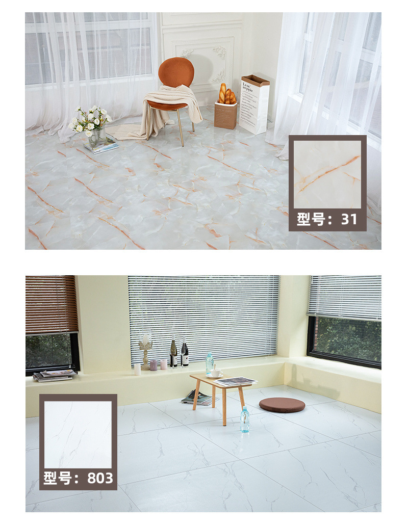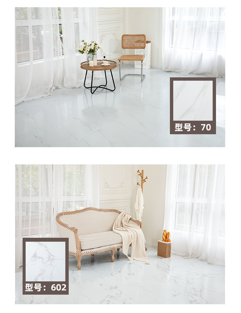 pvc大理石纹胶地板贴自粘奶油风瓷砖地胶家用纯色地面翻新改造