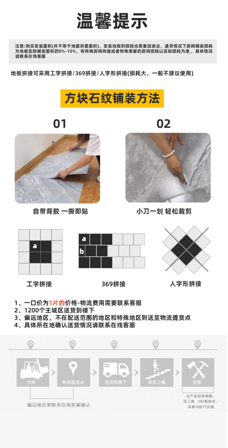 80 フロアステッカー自己粘着 PVC フロアレザー家庭用厚みのある耐摩耗性抗セメント床直接舗装模造タイル石プラスチック床
