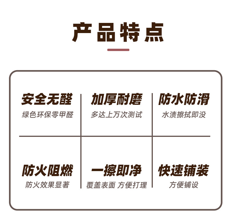 床革セメント地に直接敷かれ、耐摩耗性防水タイル地のプラスチックマットを厚くして、床を改造して貼り付ける