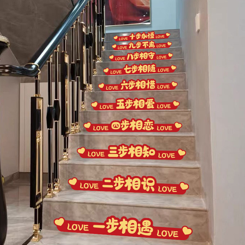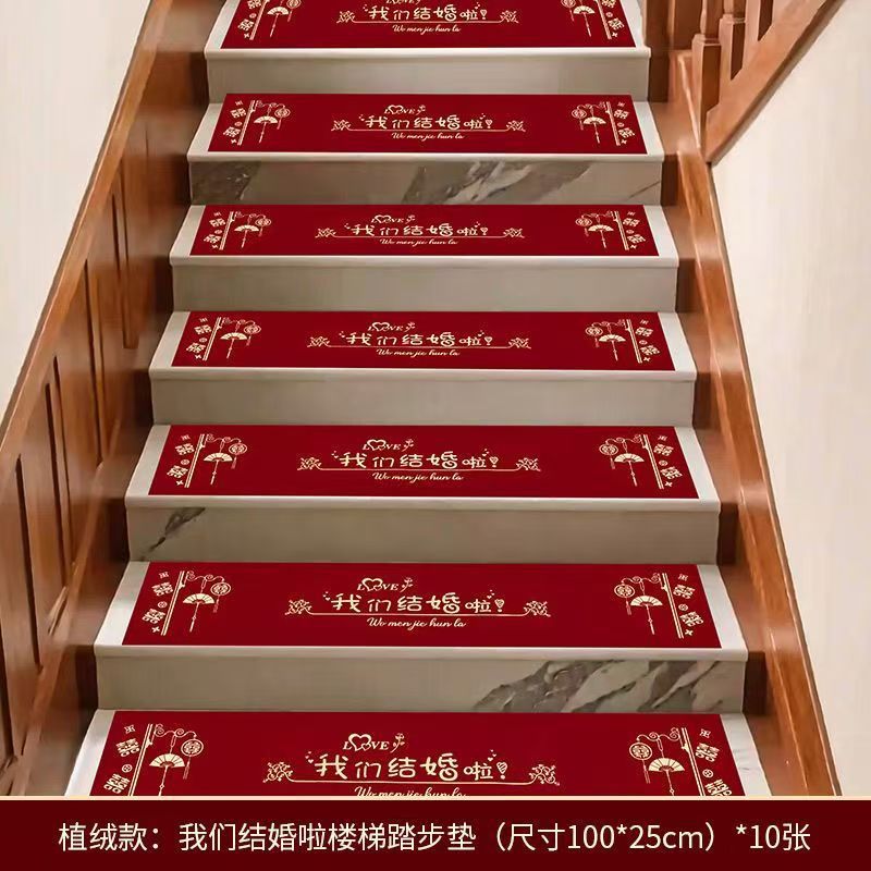结婚踏步婚房布置套装植绒垫楼梯贴纸婚礼台阶踏步贴自粘楼梯装饰