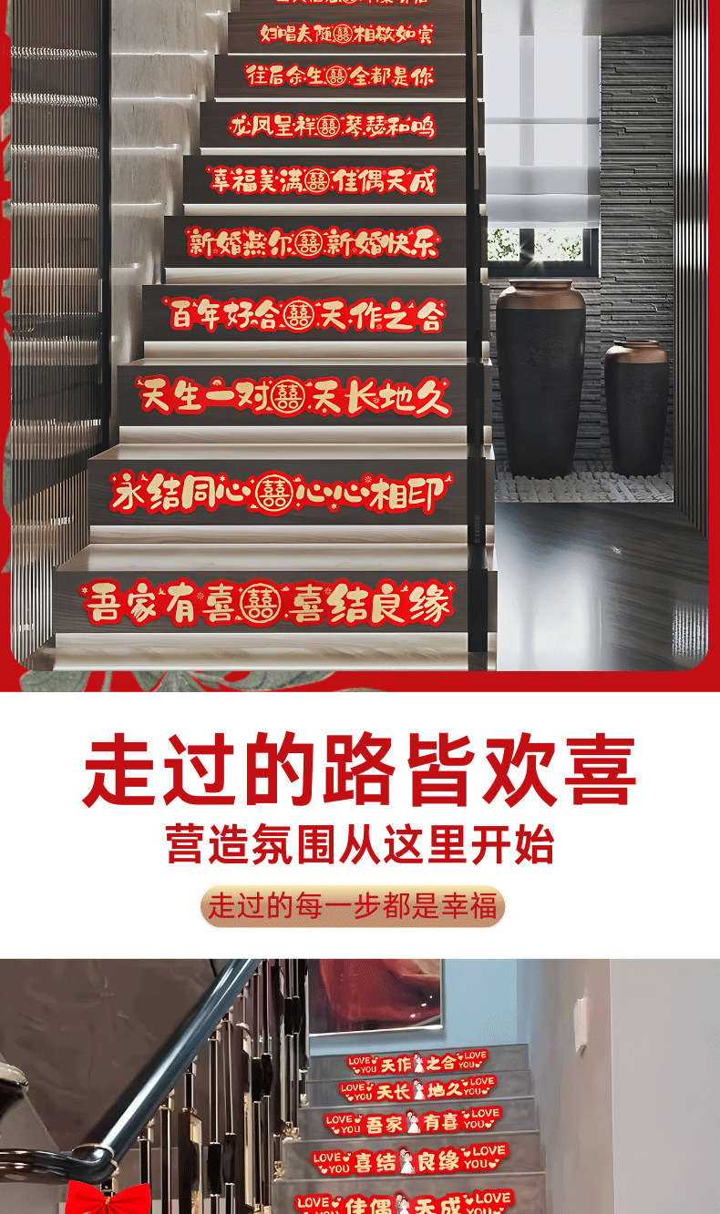 锁美家居结婚布置专用喜字楼梯贴婚房台阶装饰喜字贴婚礼婚庆装饰