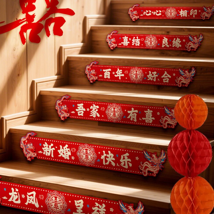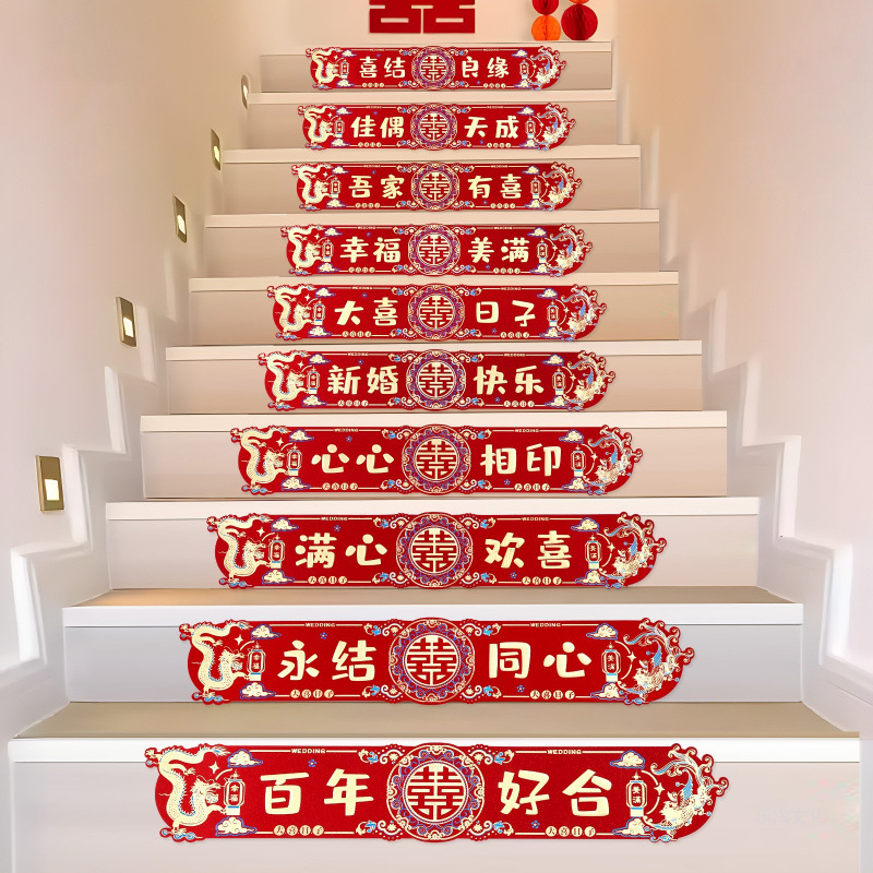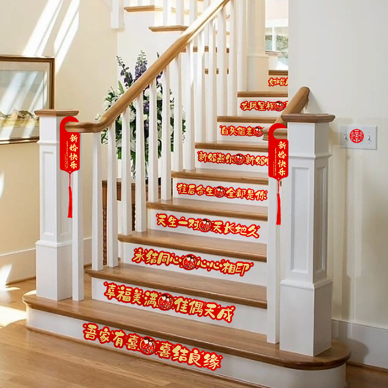 楼梯扶手结婚装饰台阶贴纸婚房装饰布置女方婚礼喜字喜事用品大全