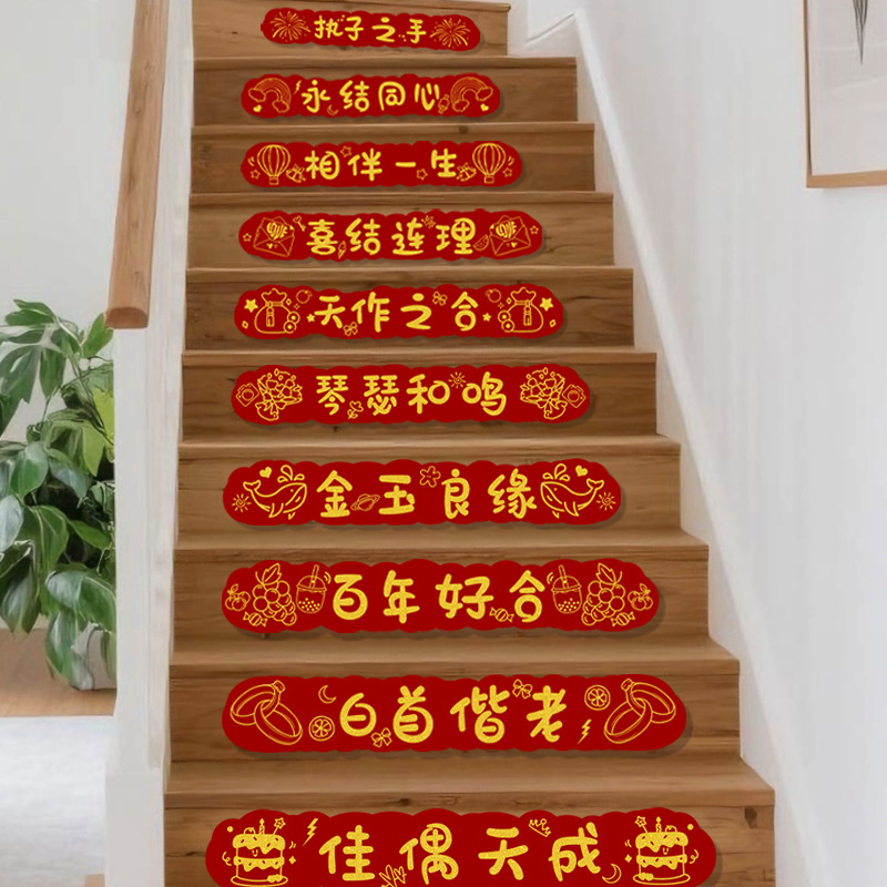 婚房布置结婚礼楼梯台阶踏步贴纸装饰扶手喜字贴自粘婚庆用品大全
