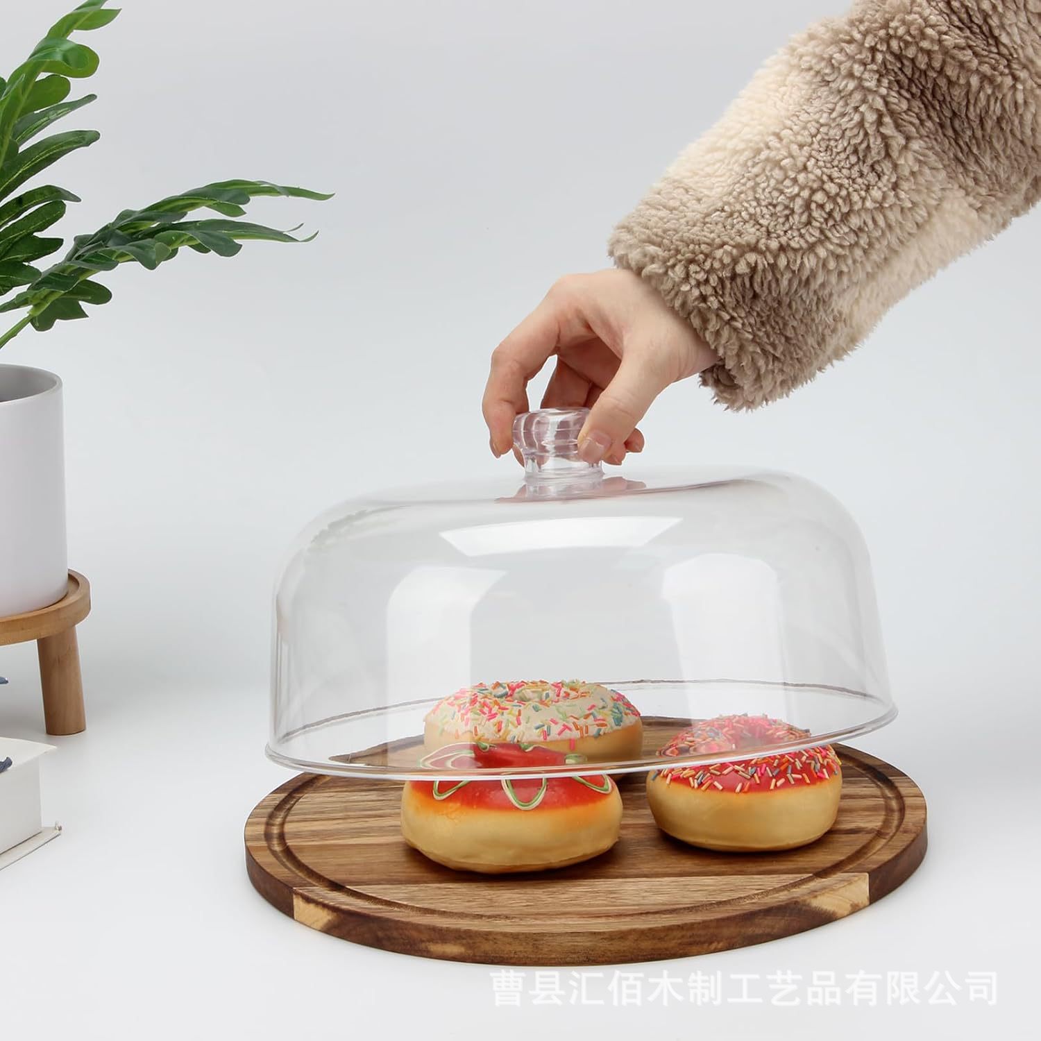 透明盖子蛋糕托盘下午茶水果盘甜品点心面包试吃盘带盖子实木托盘