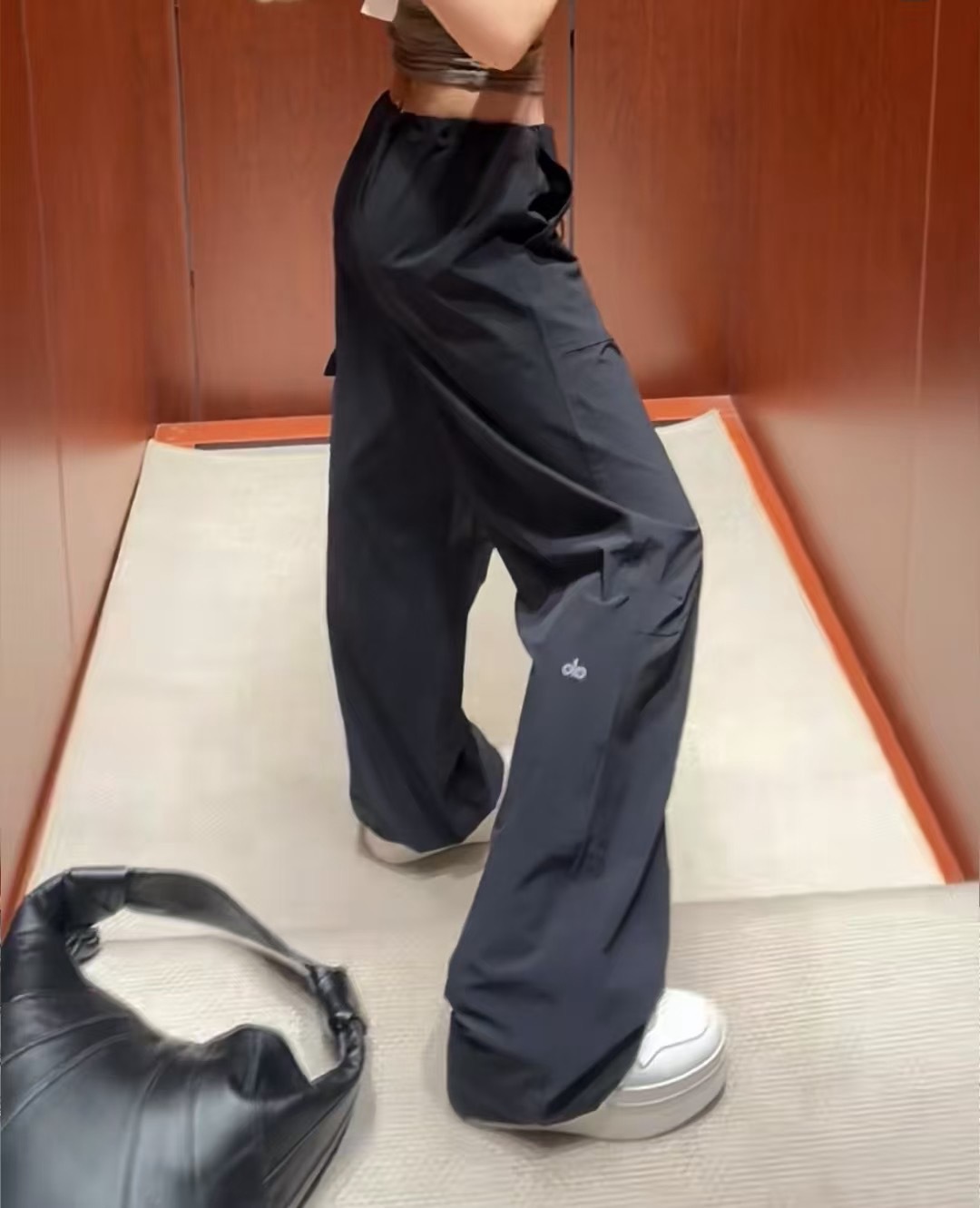 alo 夏薄いカジュアルスポーツパンツ織りワイドレッグパンツスポーツ速乾性ハイウエストアイスシルクドレープストレートレディース