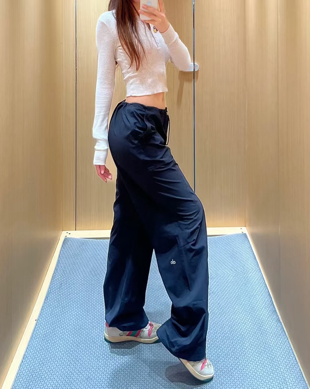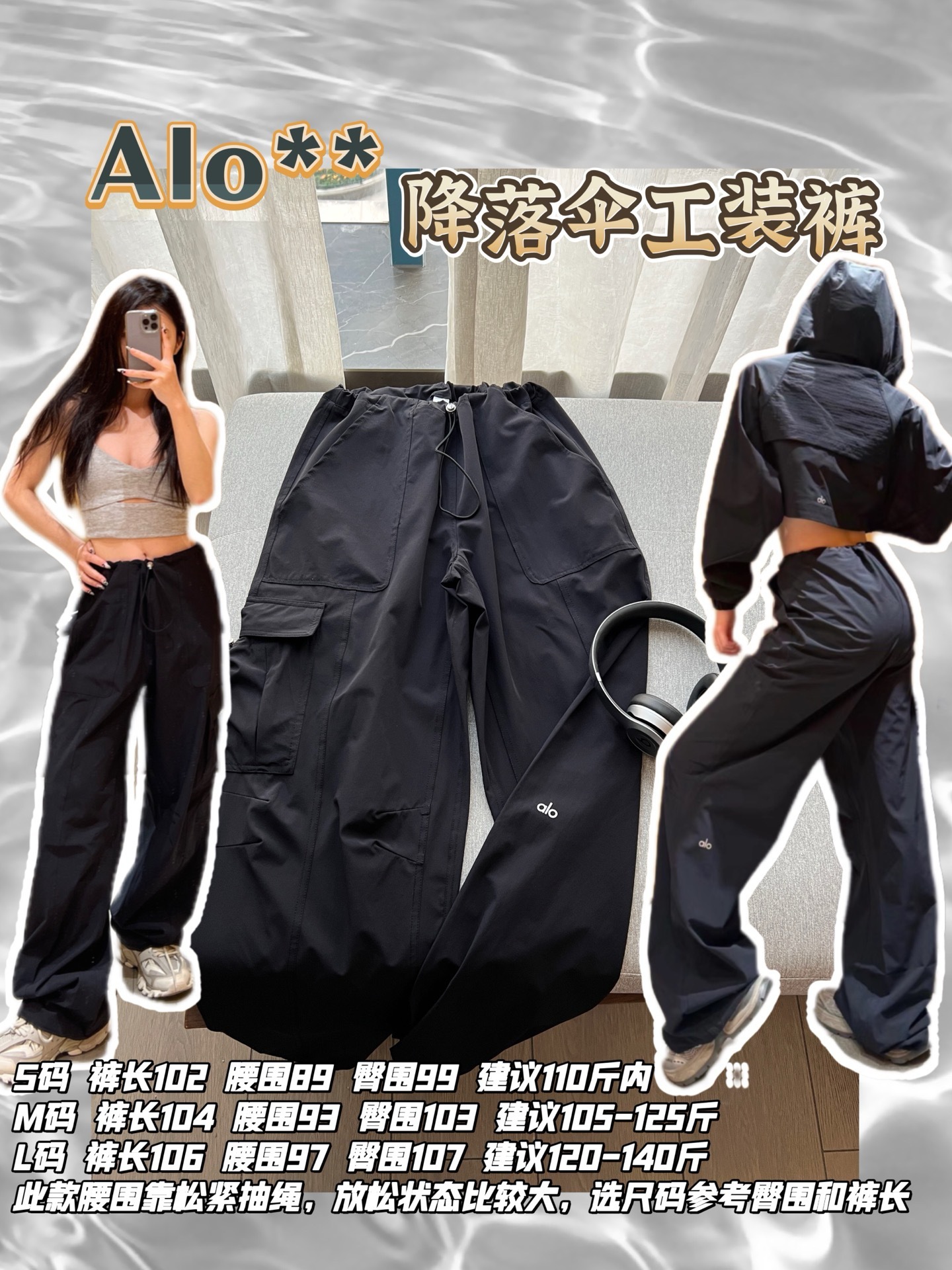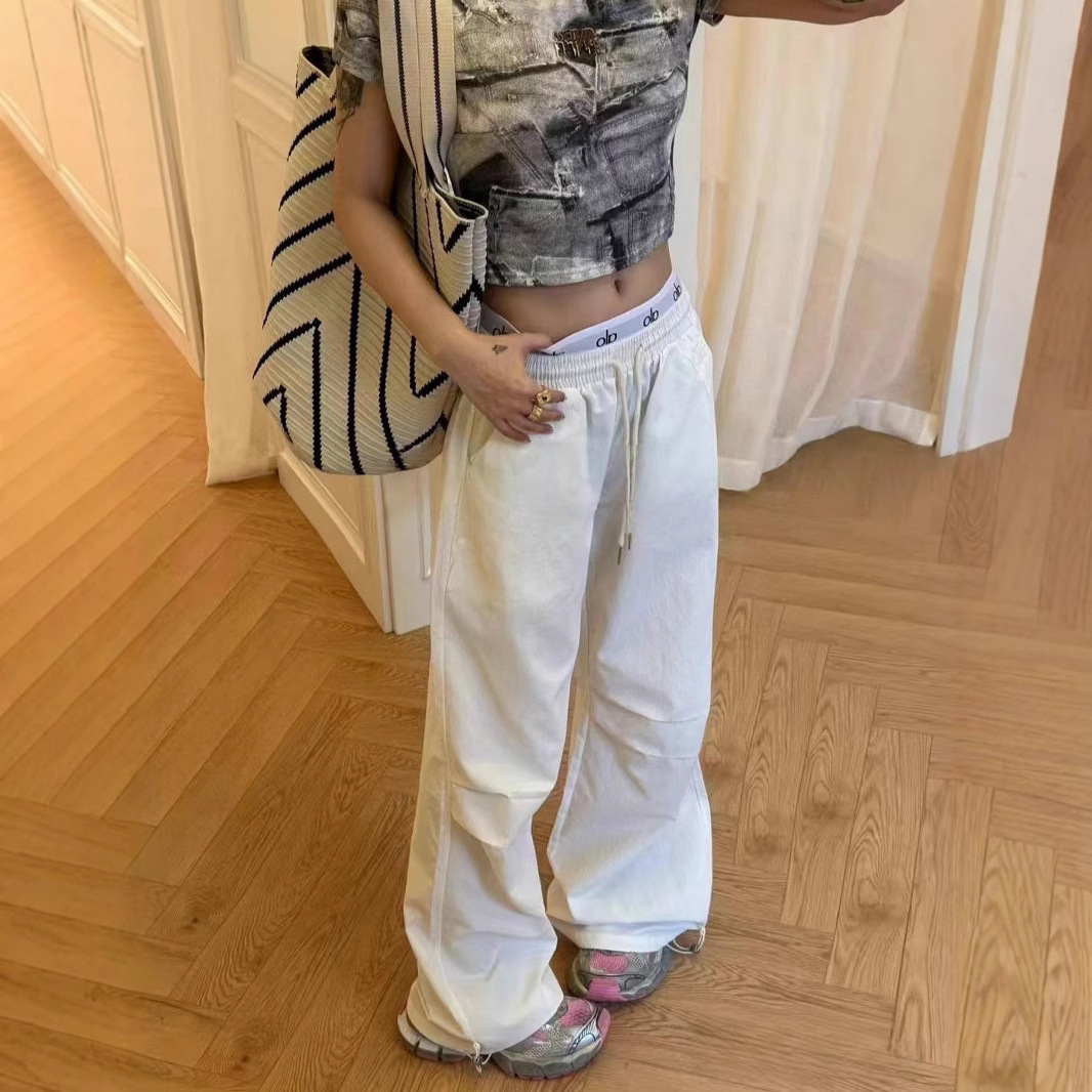 Alo アメリカンレターウェビングダブルウエストパラシュートオーバーオールレディースルーズスリミング多用途スポーツ速乾パンツ