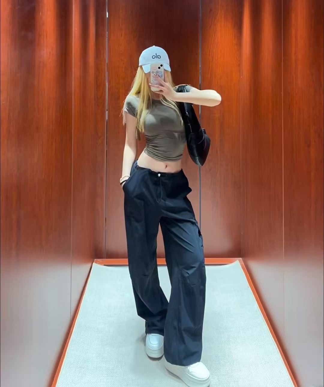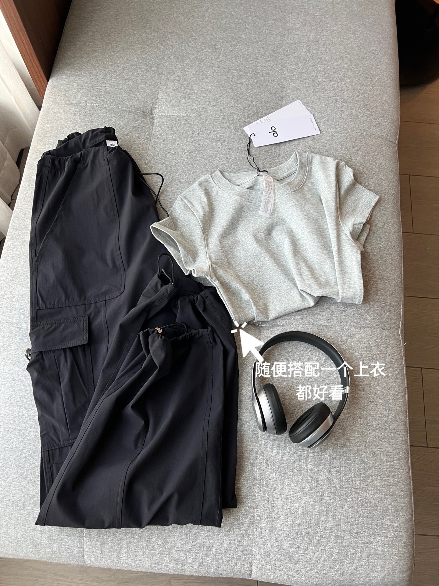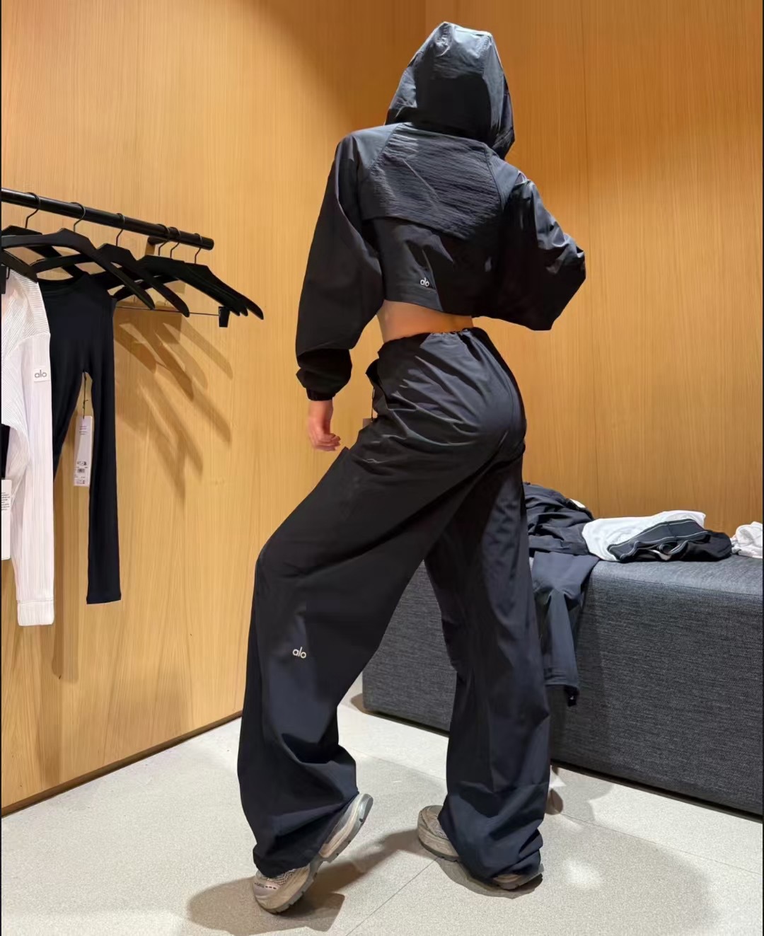 Alo アメリカンレターウェビングダブルウエストパラシュートオーバーオールレディースルーズスリミング多用途スポーツ速乾パンツ