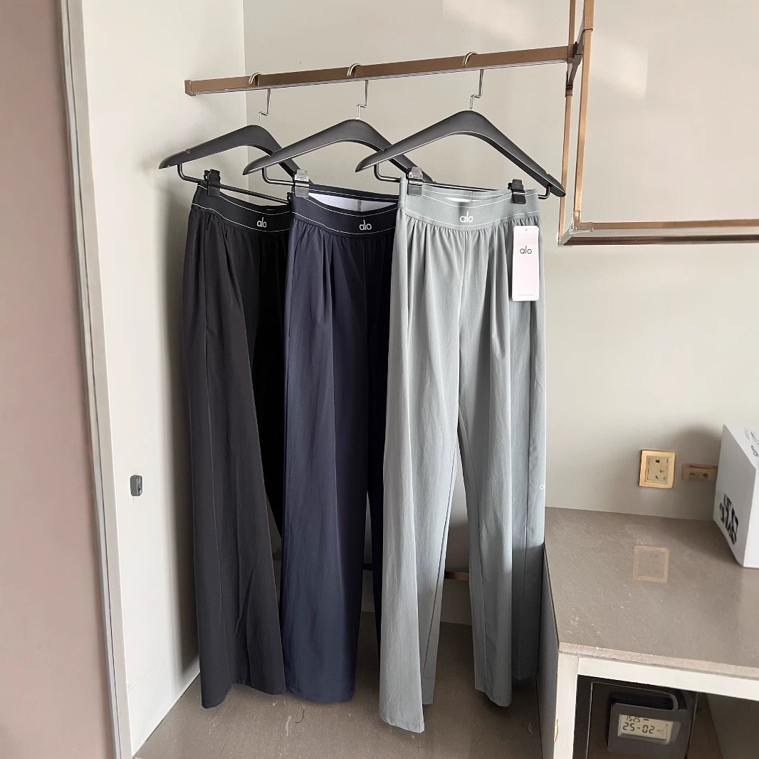 Alo パンツストレートレッグ反射レッグラベル 2025 新しいカジュアルウェビングハイウエストアイスシルクドレープワイドレッグライトスポーツパンツ