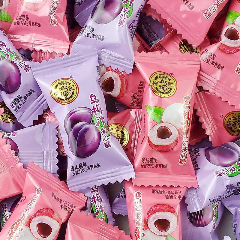 徐福記ジュースサンドイッチ砂糖果物味硬糖ばら積レイシ烏梅混合味詳しくは、喜糖果を説明してください