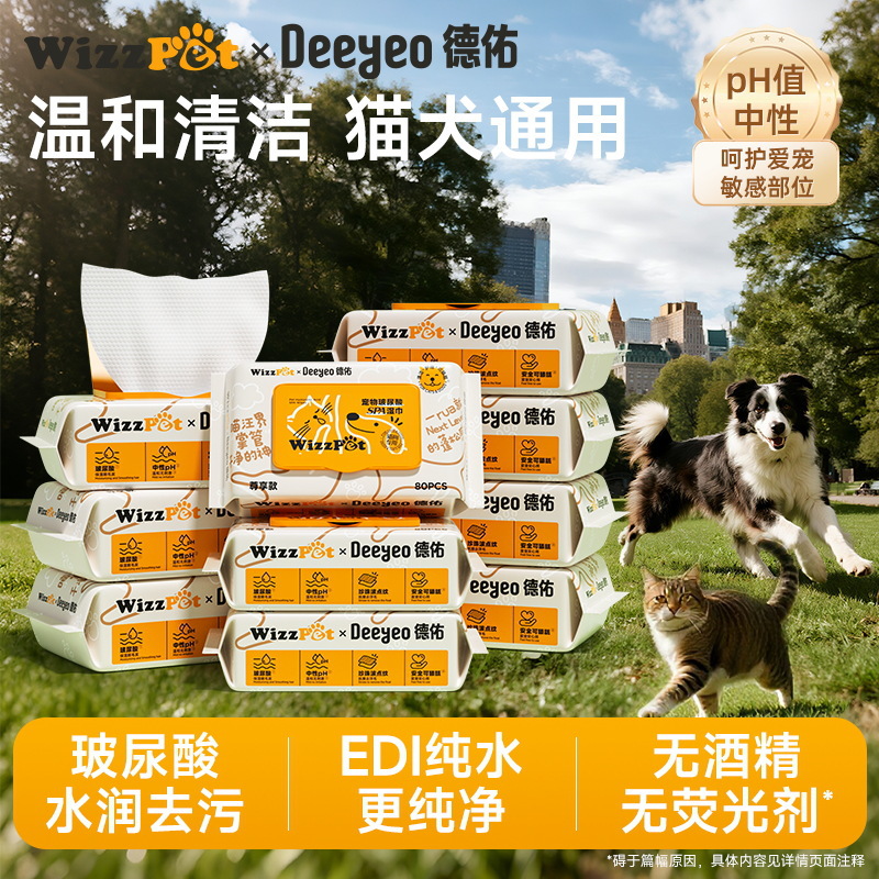 德佑宠物湿巾80抽猫狗清洁湿纸巾擦脚擦脸去污渍家庭必备