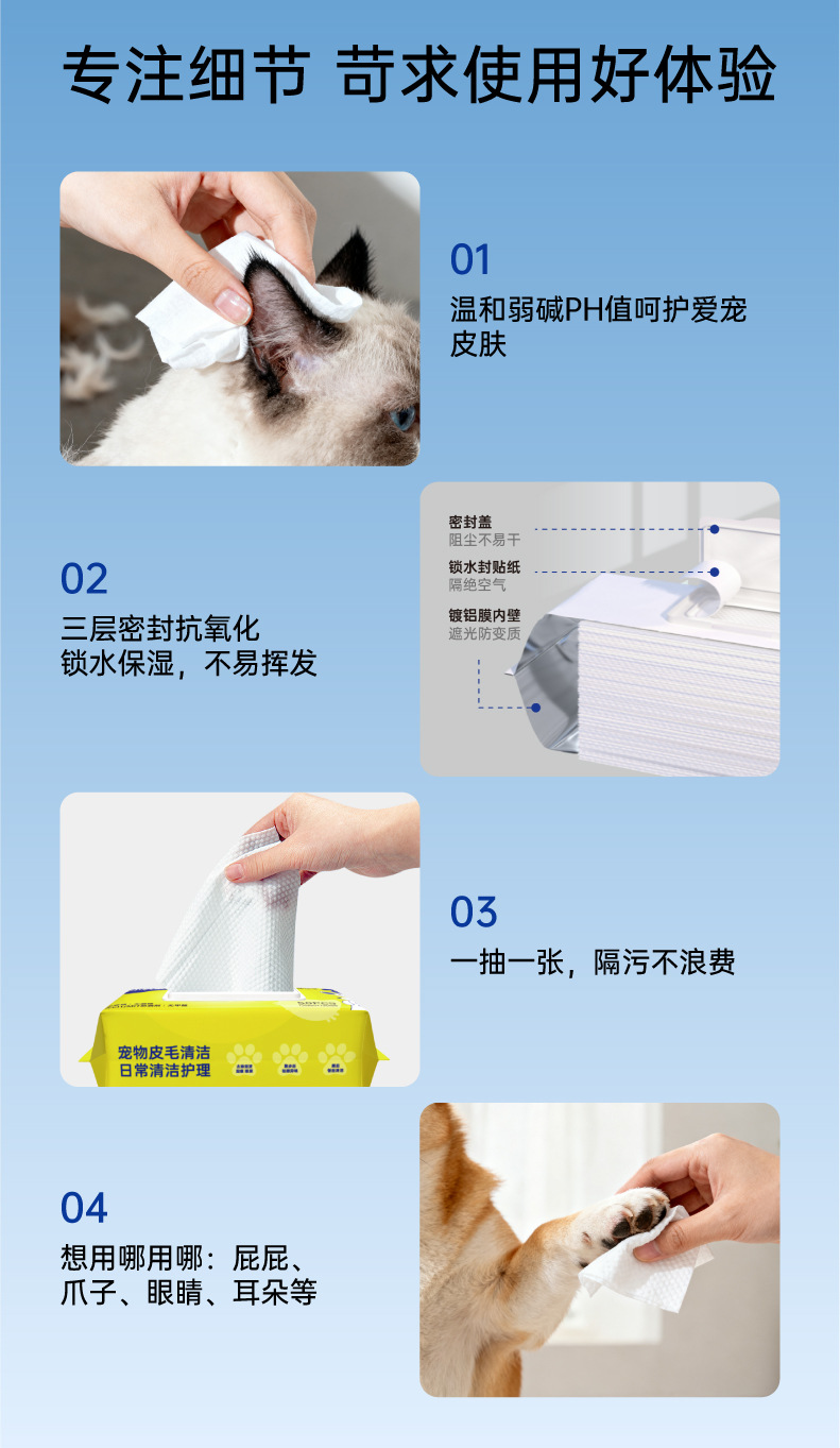 ペット用ウェットティッシュ 猫犬用 抗菌消臭ケアウェットティッシュ 使い捨て専用クリーニングウェットティッシュ卸売