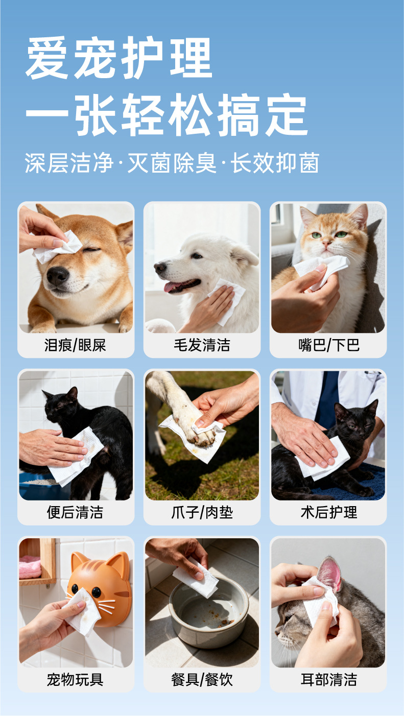 宠物湿巾猫咪狗狗专用湿纸巾清洁抑菌免洗手套擦脚屁股洗澡擦泪痕